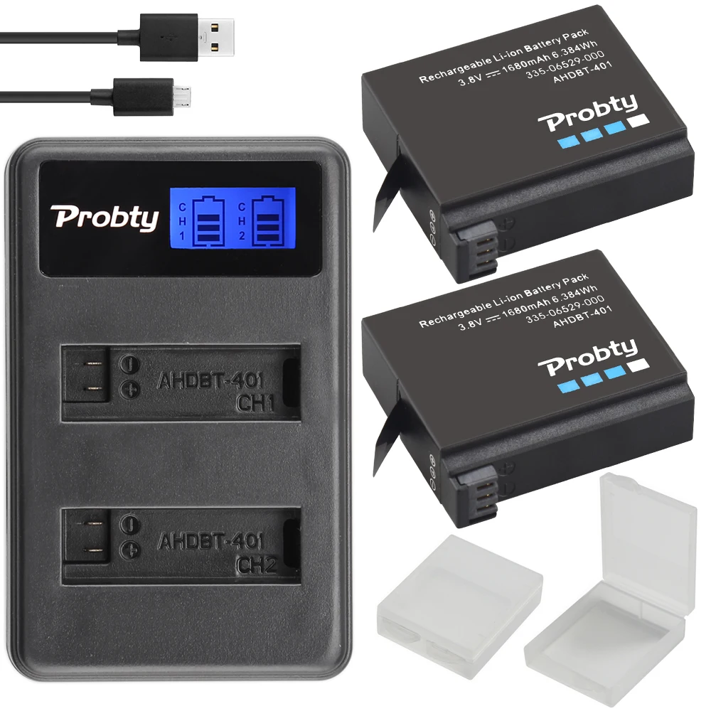 Зарядное устройство для экшн-камеры Gopro Hero 4, 2 аккумулятора, ЖК-дисплей, USB, AHDBT 401