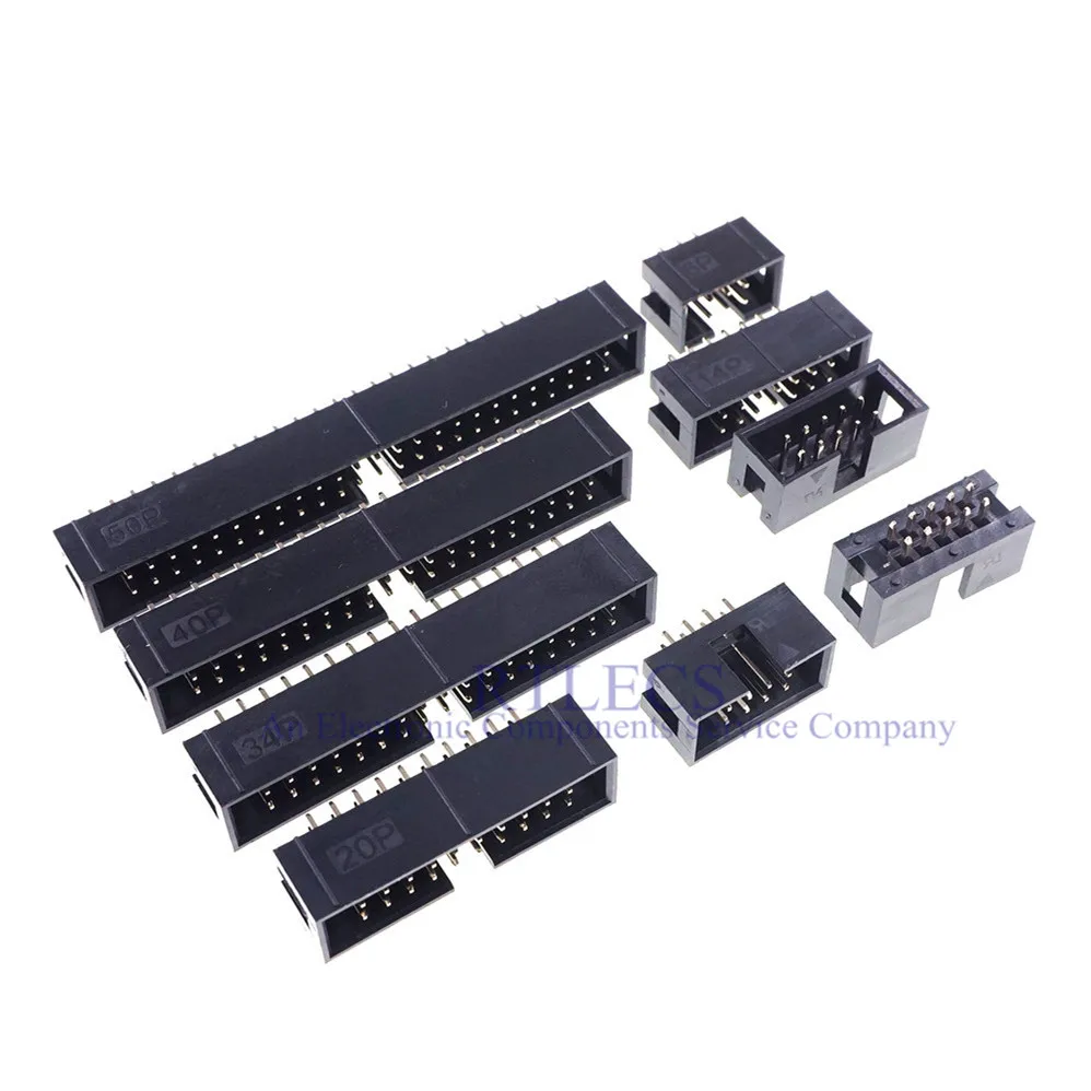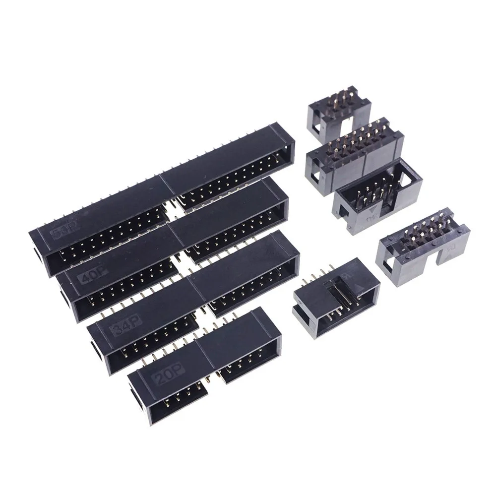 10 шт., 2,54 мм, 6, 8, 10, 12, 14, 16, 20, 24, 26, 30, 34, 40, 50, позиция 180 градусов, оболочка PCB IDC, разъем, соединитель