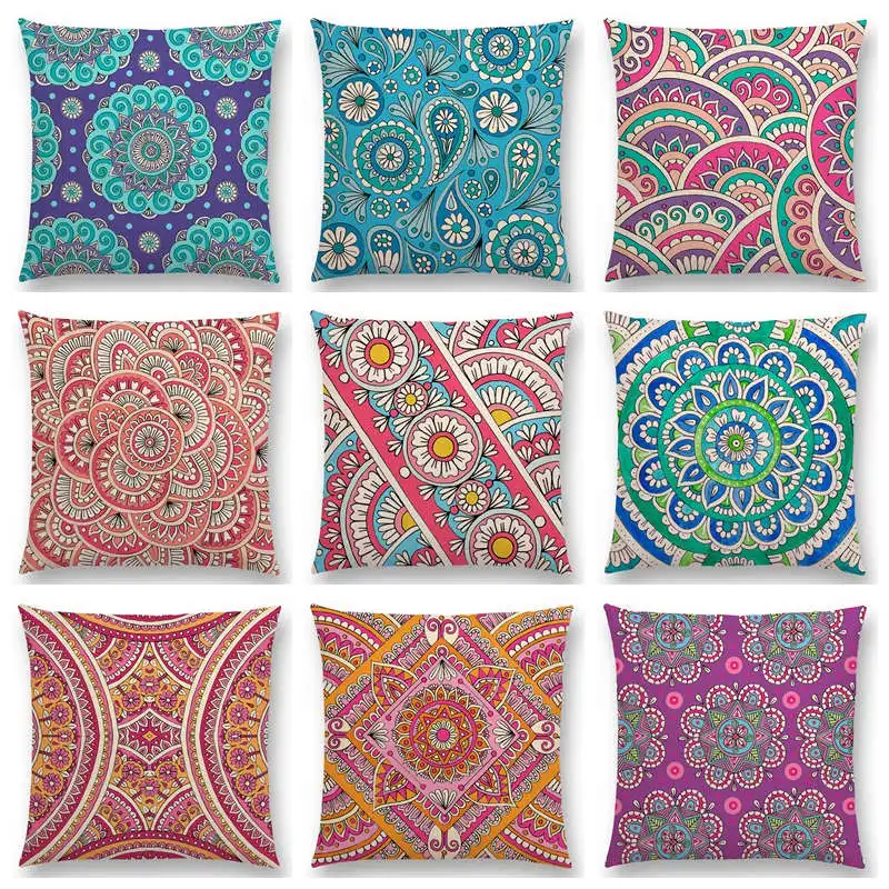 Декоративная подушка для дивана, с изображением мандалы и цветов, ф...