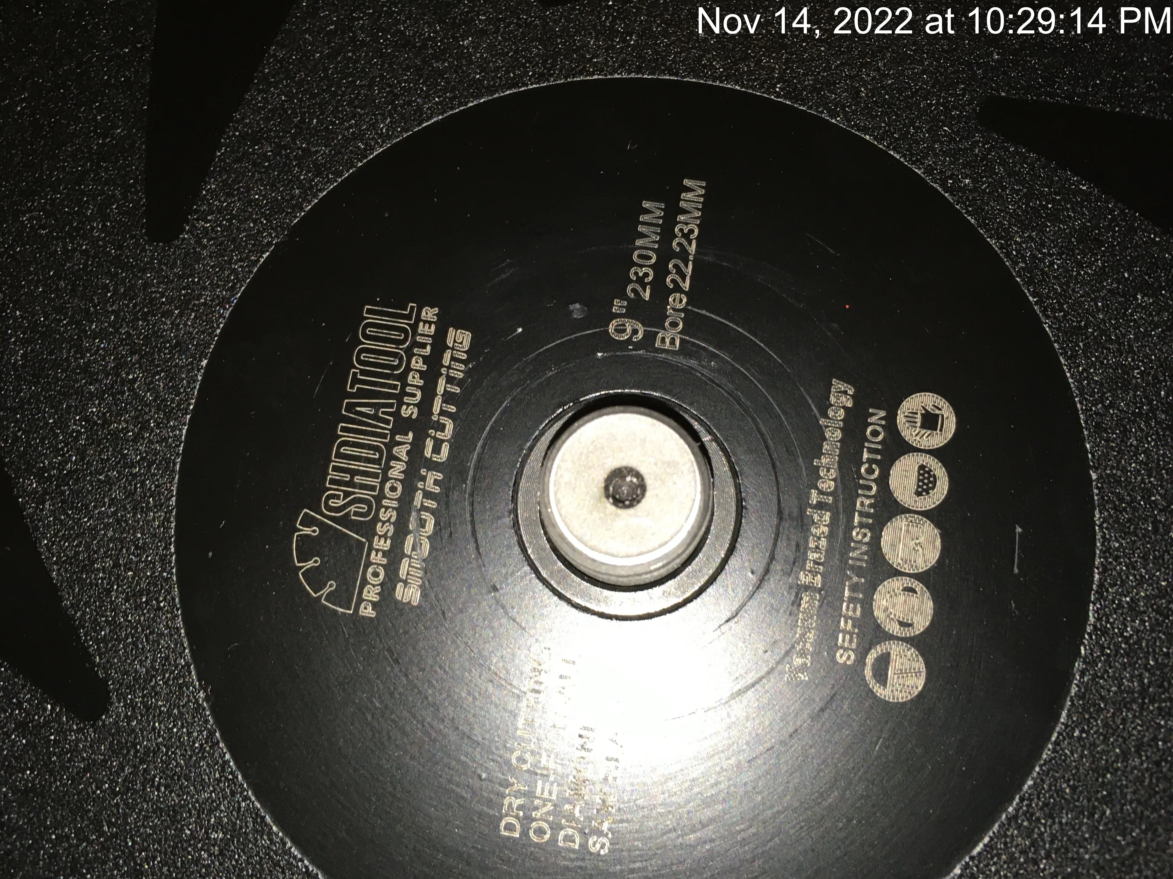 Con: подходит для моего 9 "шлифовщика после завинчивания на нижней и верхней фланцах с большой силой-отверстие отверстия кажется слишком тугим --- требует от меня использовать мой ключ с большой силой. Важно то, что он наконец-то поместился в 7/8 "Арбор фланцы. Про: Край имеет толстый слой или алмазы, больше и толще, чем алмазное лезвие Diablo 7 ", которое находится на местном домашнем складе. Это очень хорошо. Спасибо за хорошую таможенную декларации за мой импорт.