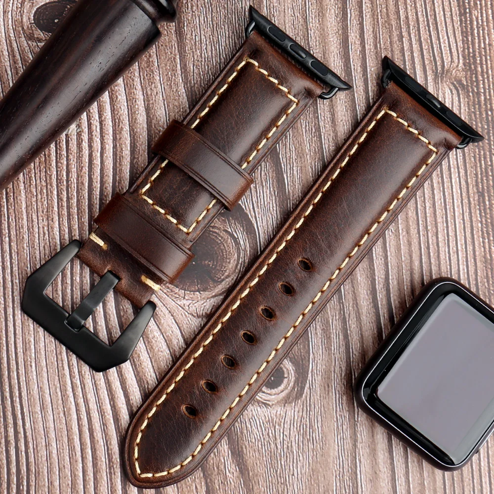 Аксессуары для часов MAIKES из натуральной коровьей кожи для apple watch ремешок 45 мм 38 мм коричневый ремешок для apple watch 44 мм 41 мм iwatch 7 браслет