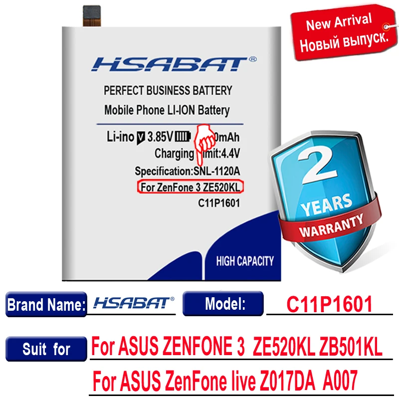 Аккумулятор HSABAT C11P1601 5600 мАч для ASUS ZENFONE 3 ZENFONE3 ZE520KL, батареи Для ZenFone live Z017DA ZB501KL A007