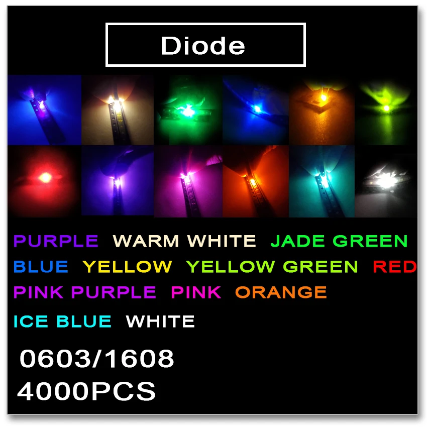 JASNPROSMA 0603 1608 SMD LED 4000 шт. красный оранжевый желтый зеленый нефрит зеленый ледяной синий белый теплый белый розовый фиолетовый светильник 1,2*0