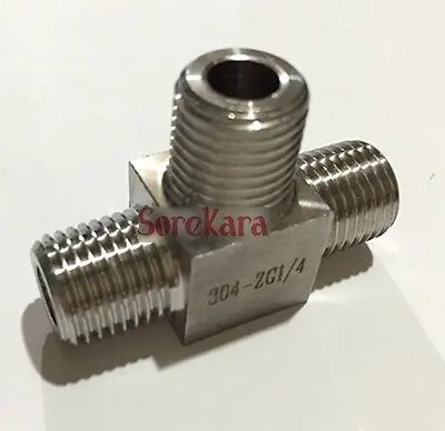 Тройник с наружной резьбой NPT 1/4 дюйма, 3-сторонний фитинг для труб из нержавеющей стали 304 для воды и газа