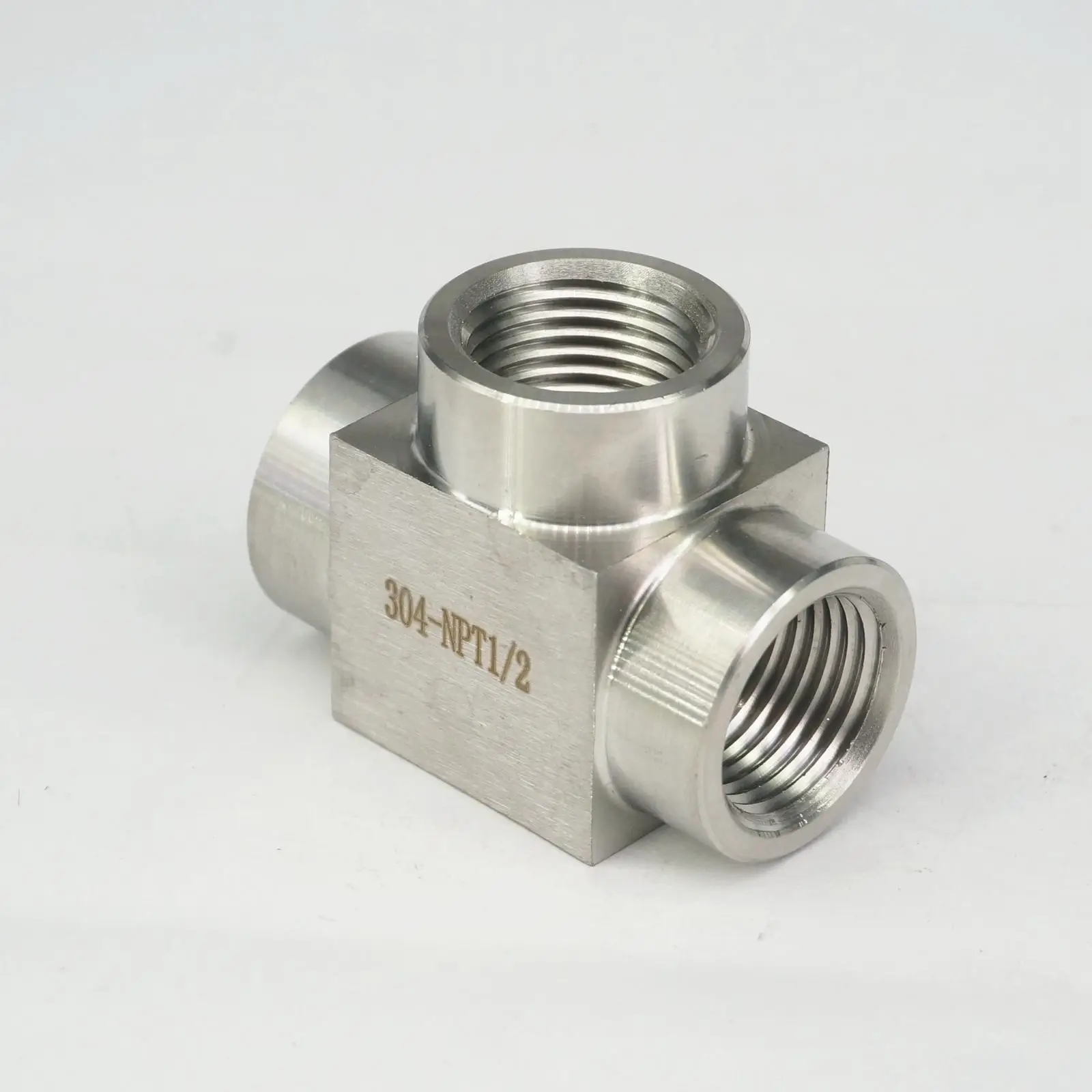Тройник 1/2 дюйма NPT с внутренней резьбой давления 4000 PSI 304 из нержавеющей стали, 3-сторонний фитинг для труб, Ват...