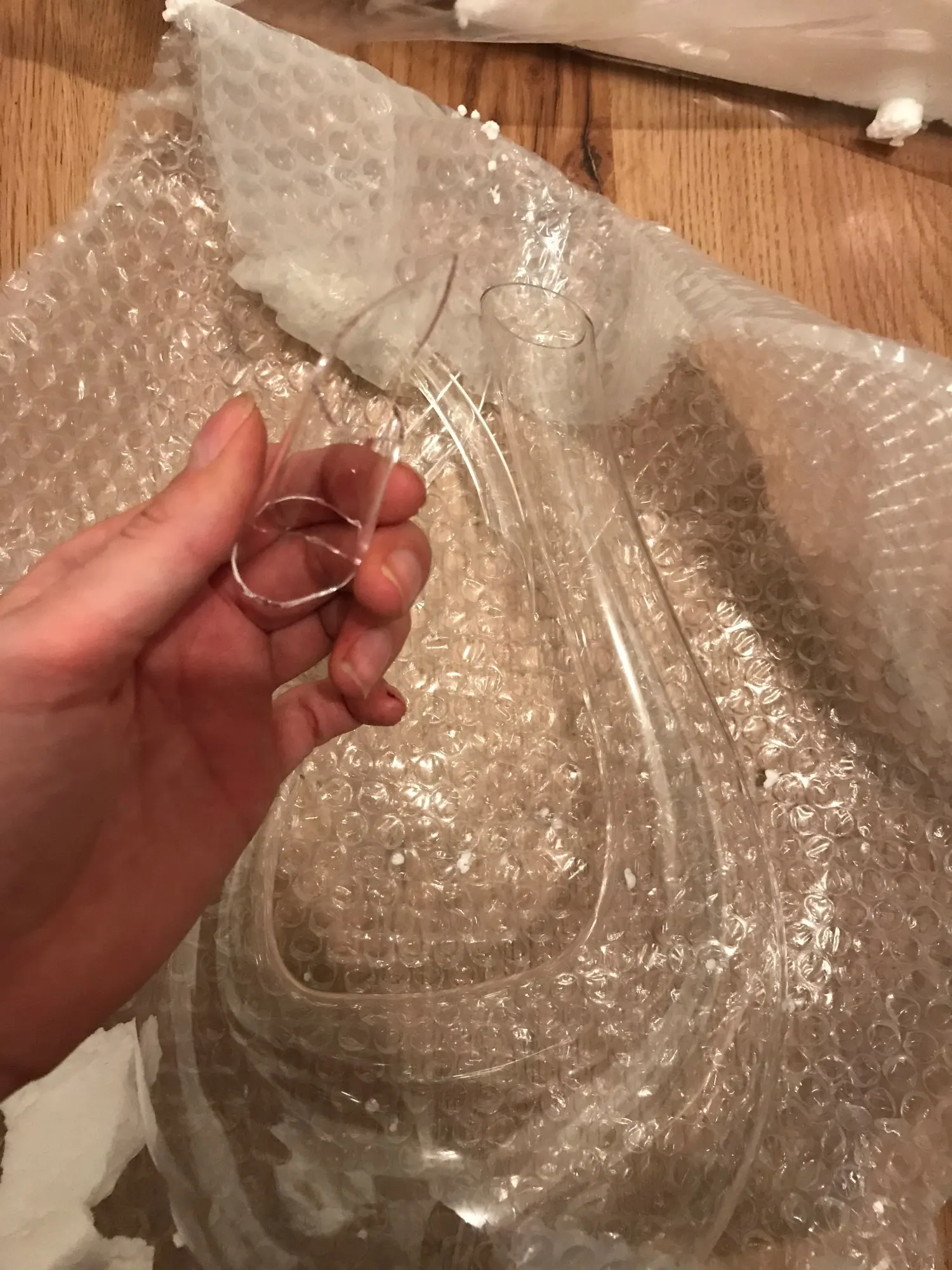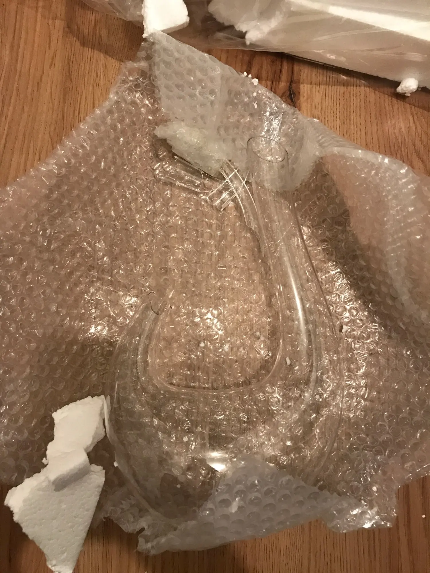 Отправлено быстро, пришло за 4 дня, курьером. Ничего не разбилось, в пенопласте и воздушной упаковке. Стекло тонковато, выглядит хрупкой, но достаточно прочной.