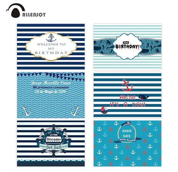 Фон для дня рождения Allenjoy для мальчиков темно-синие и белые полосы якорь вечевечерние НКА детский душ фон