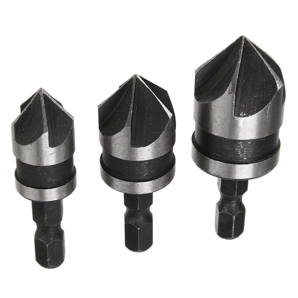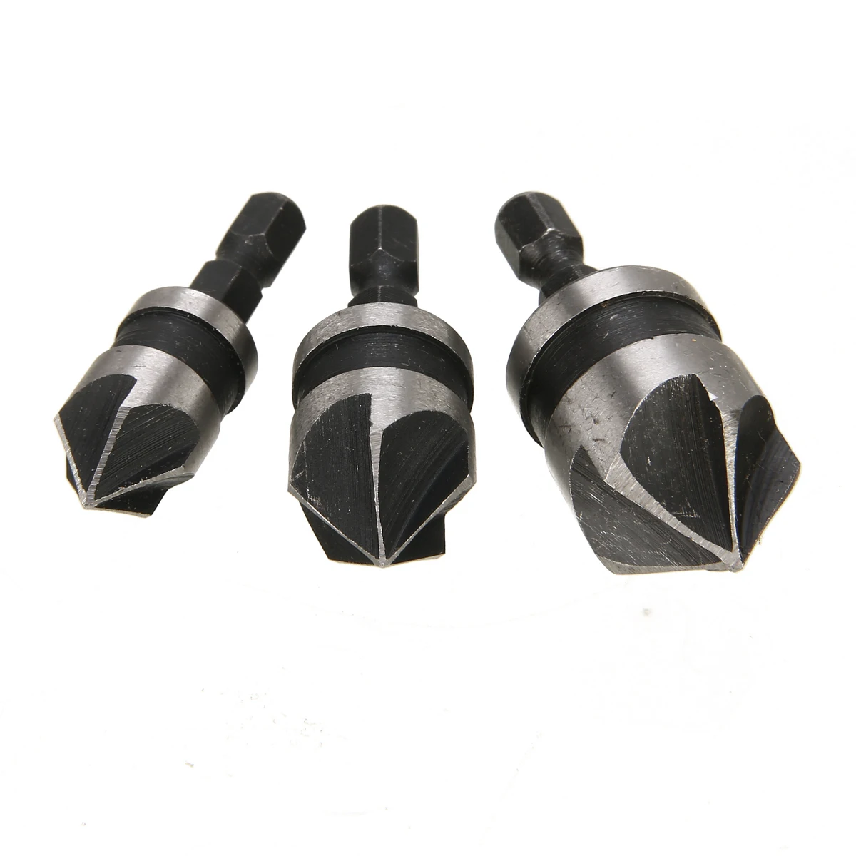 Набор сверл с зенкером Mayitr, 3 шт., 5 бороздок, 90 градусов, для снятия фаски, по дереву и металлу, 121619 мм
