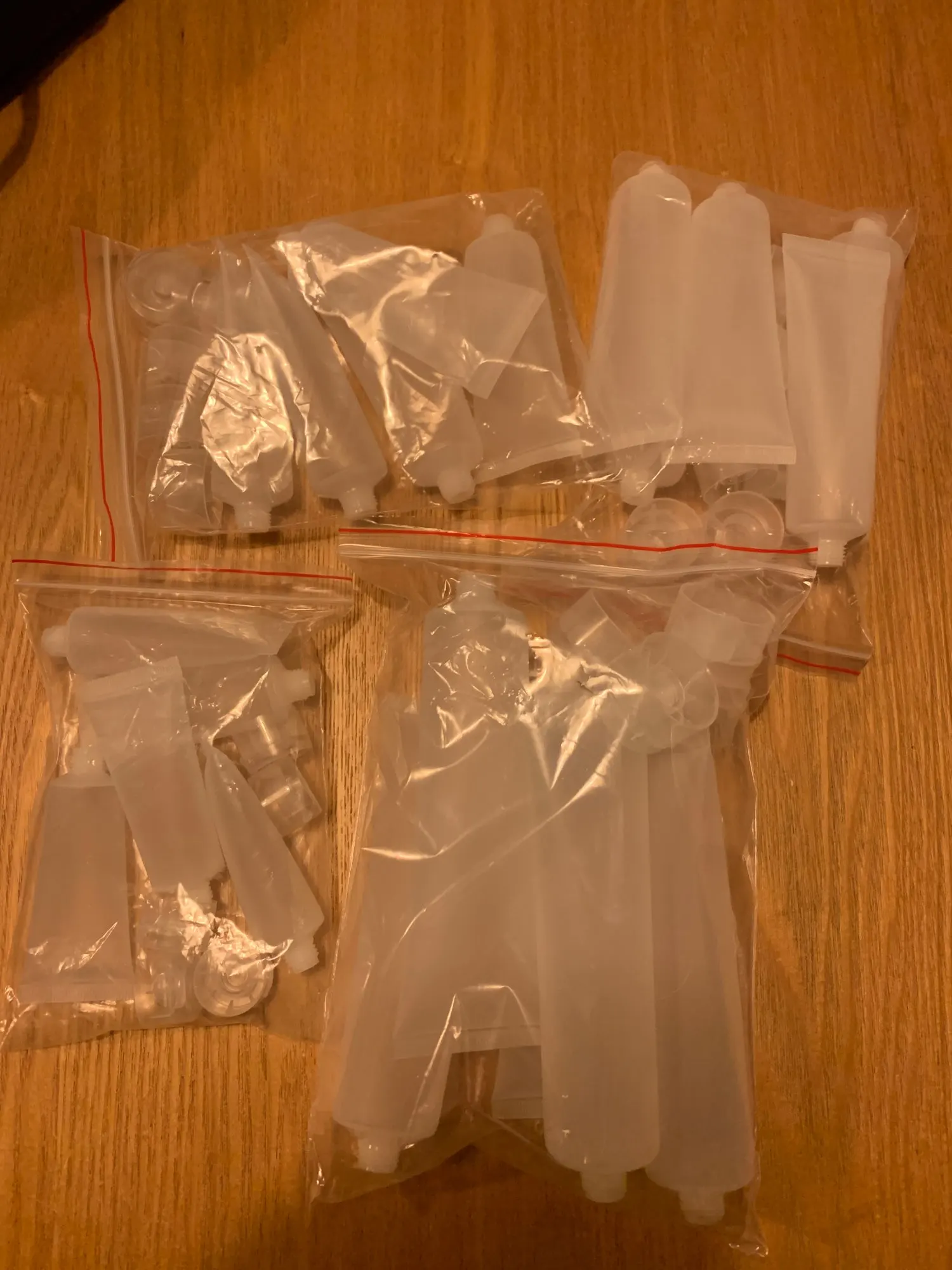 Как в описании. Очень прозрачный: цвета лосьонов (и пузырьков воздуха) легко видны. Отверстие было немного слишком маленьким, чтобы вклеиться в шприц объемом 60 мл, но легко и аккуратно отделяется ножом для очистки овощей. Около 2,5 месяцев в Канаду.