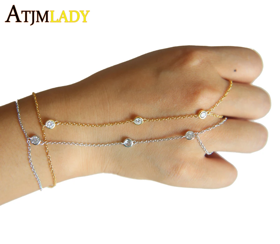 Новое поступление 3 шт. AAA Искрящийся кубический цирконий звеньевая цепочка 14 + 3 см 100% Серебро 925 пробы браслет с кольцом