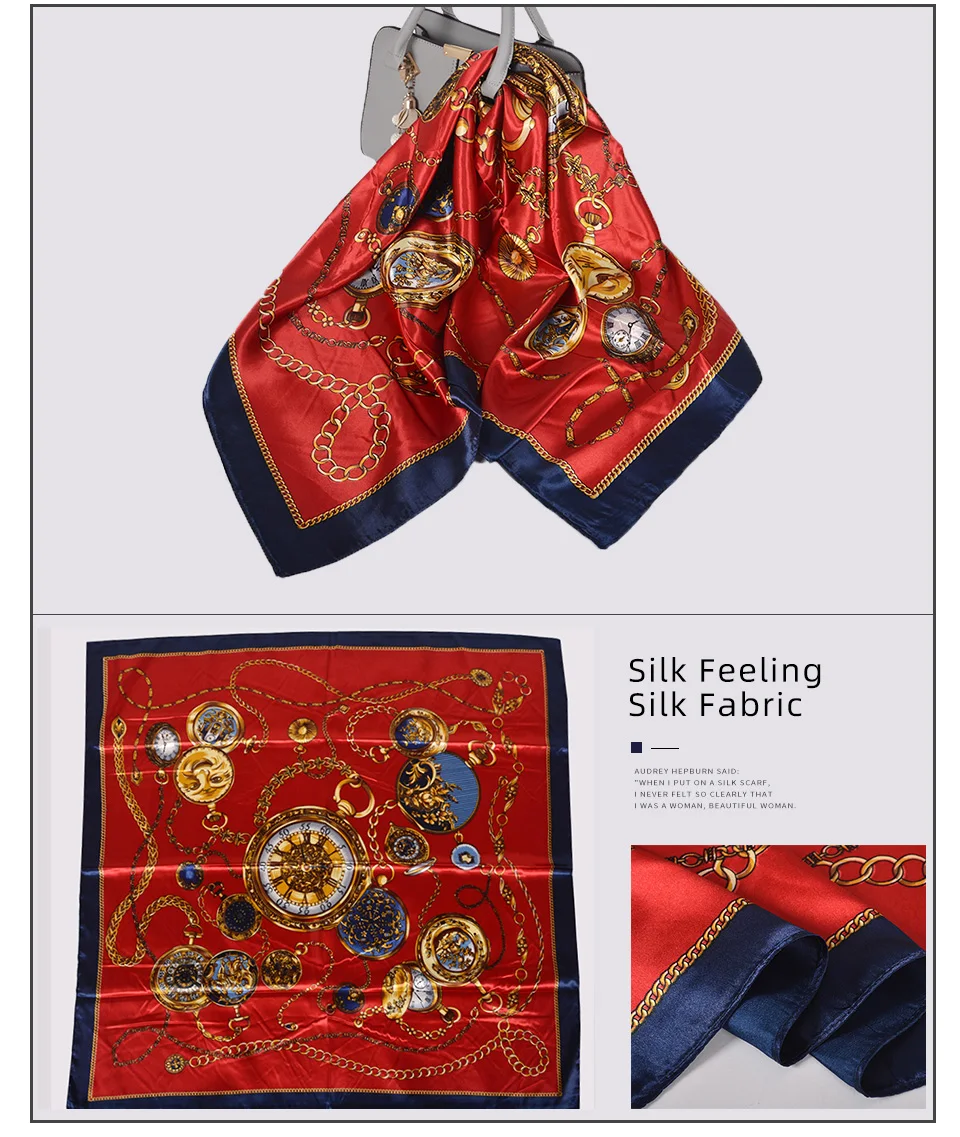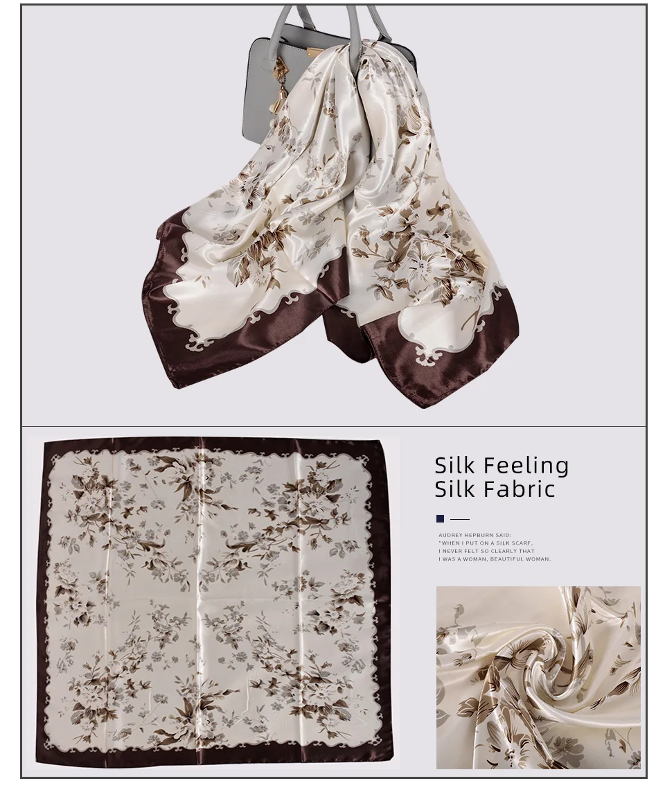 Женский атласный шелковый шарф BYSIFA, темно-синий или бежевый шаль, модные аксессуары, женские осенне-зимние шарфы с цепочкой и цветочным узором