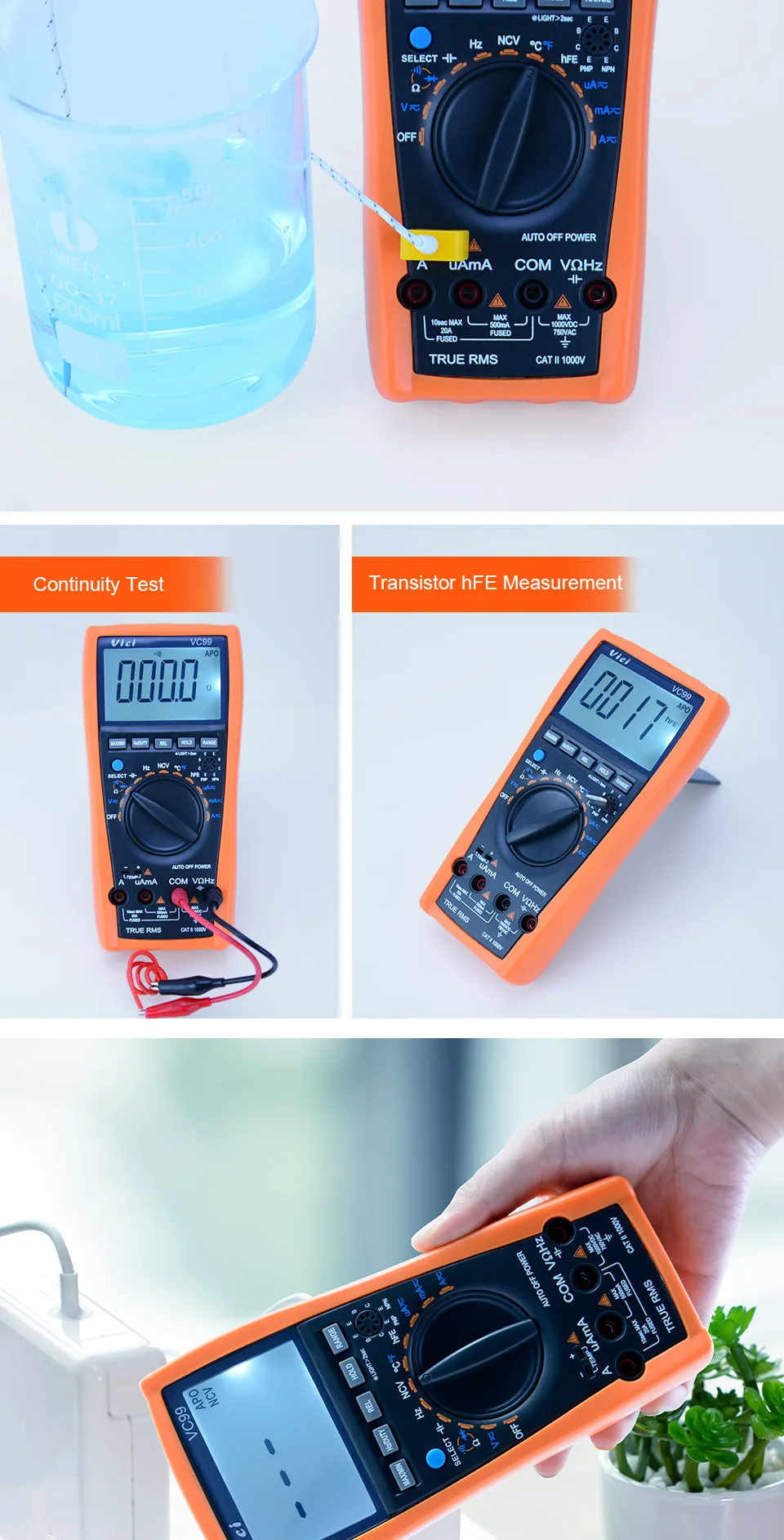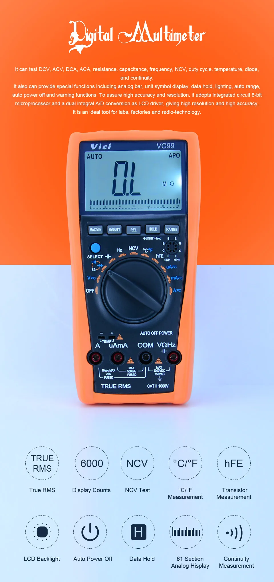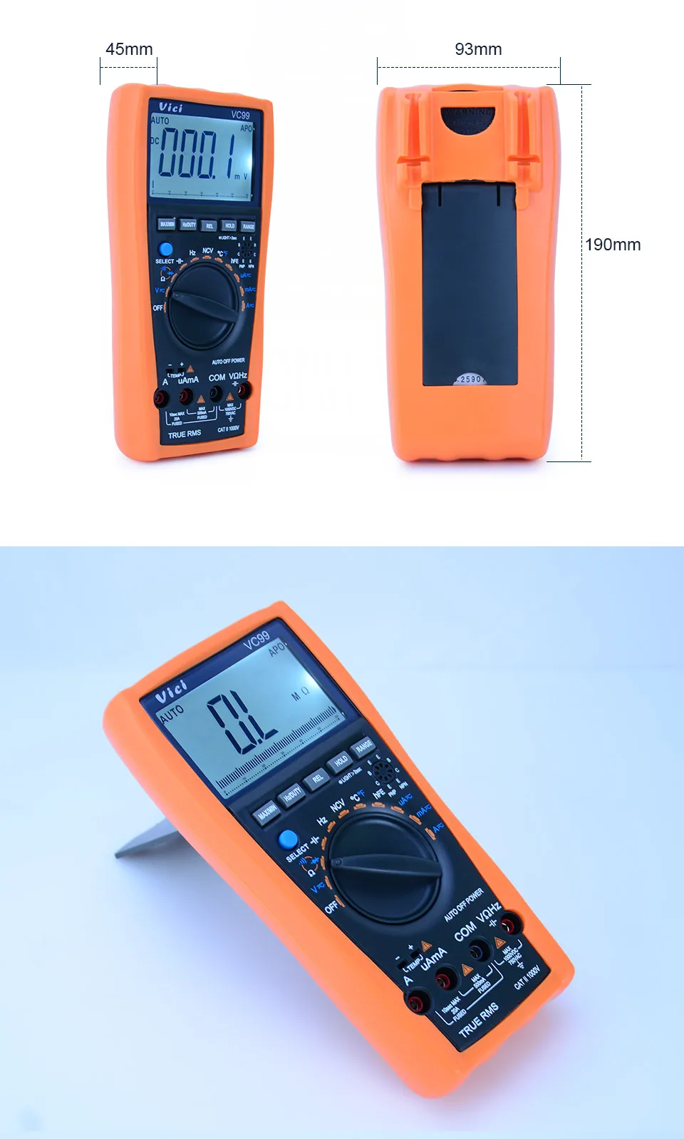 Цифровой мультиметр VICI VC99 3 67 с автоматическим выбором диапазона, 1000 В, 20 А, тестер емкости и сопротивления постоянного и переменного тока