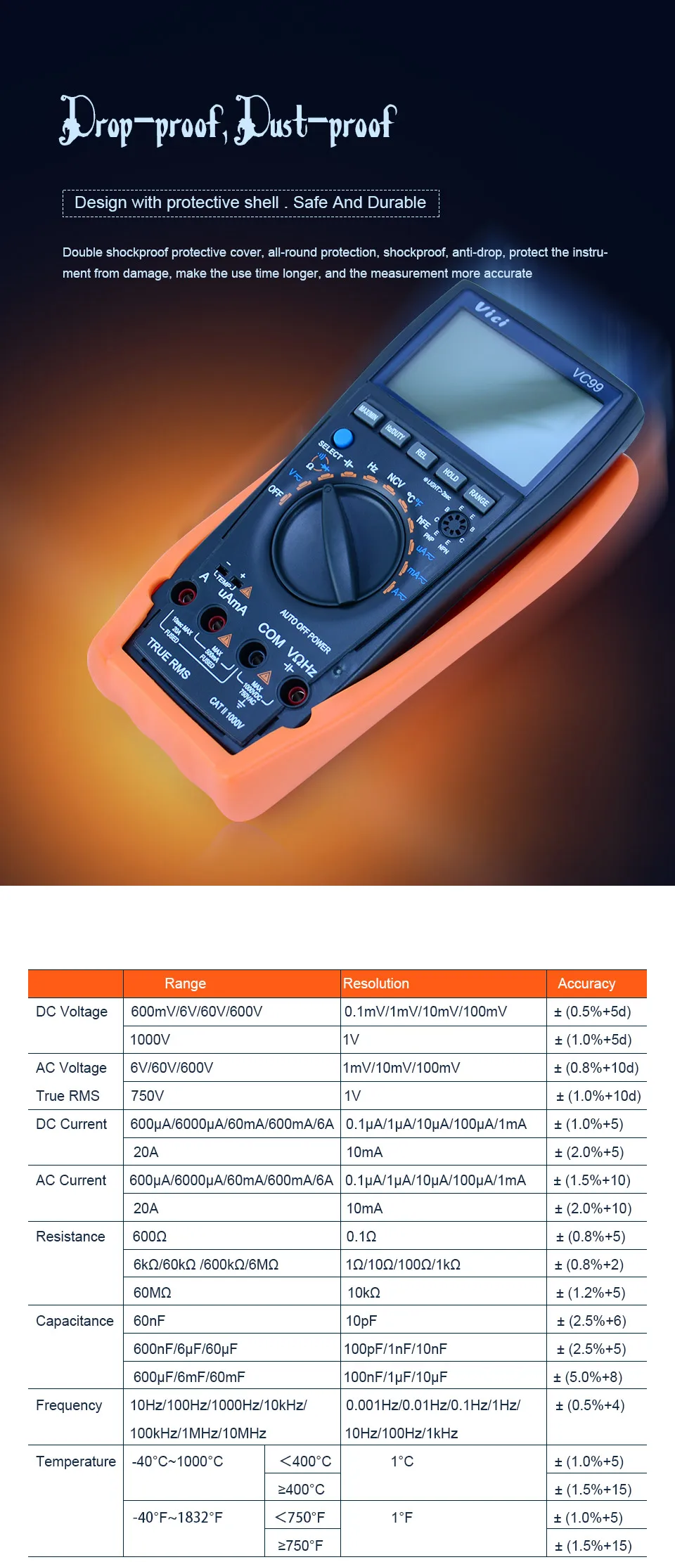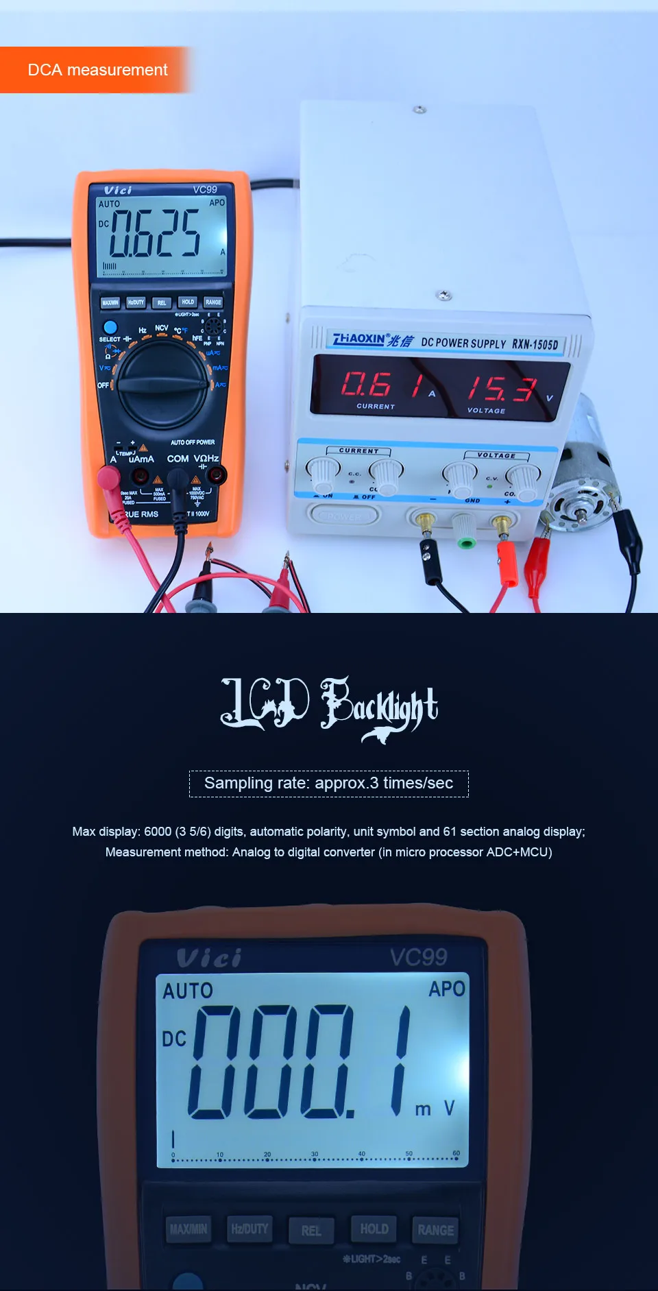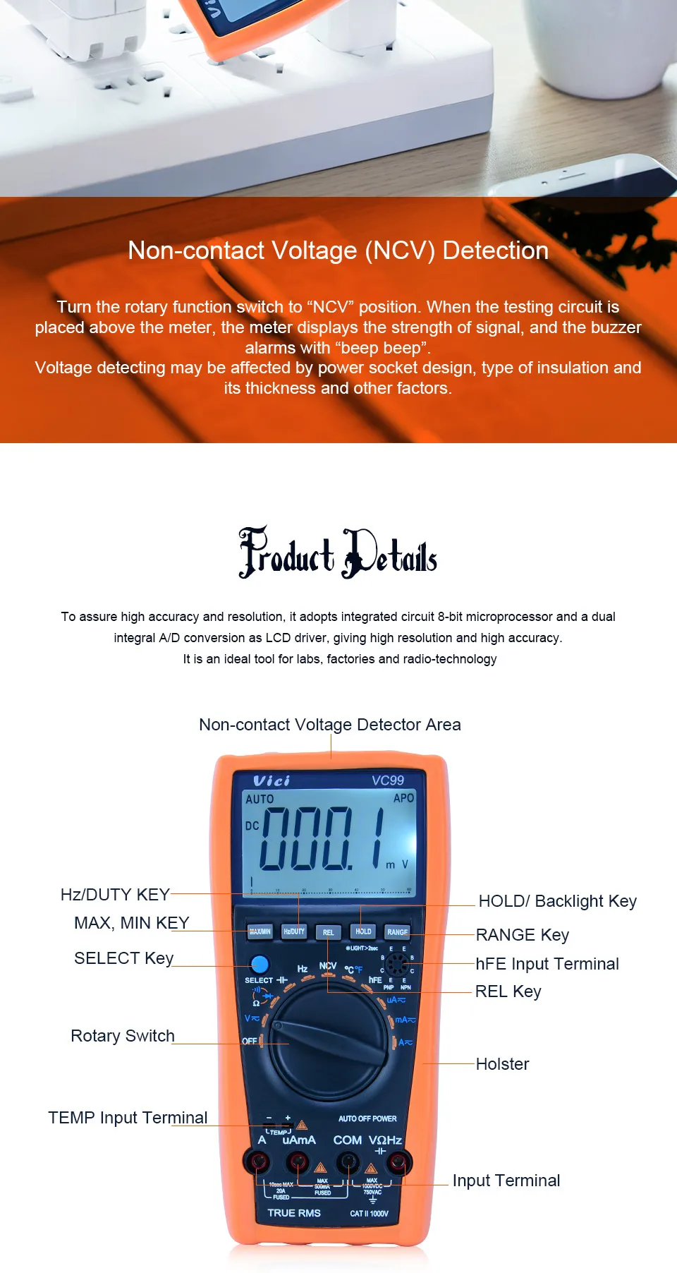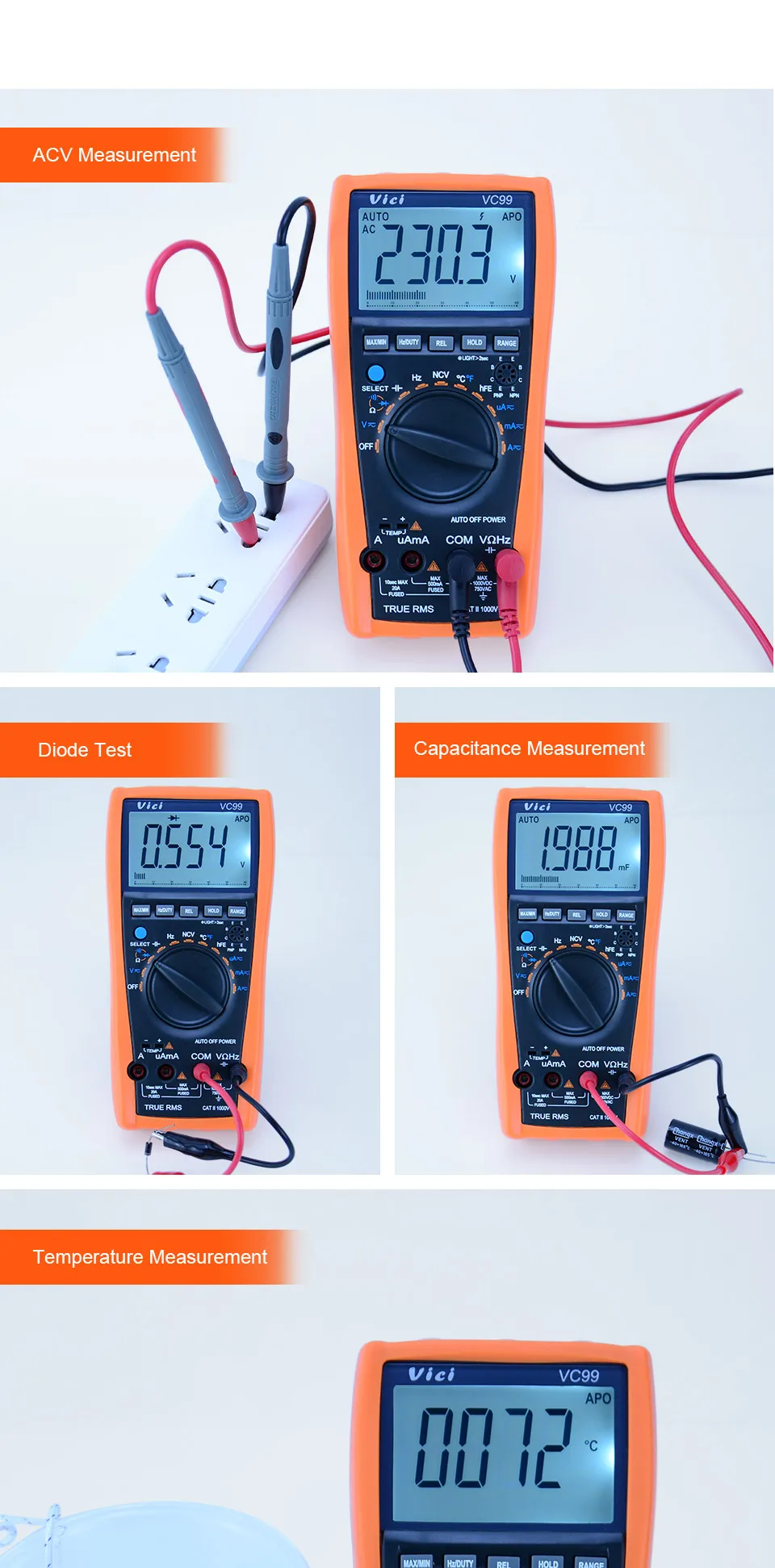 Цифровой мультиметр VICI VC99 3 67 с автоматическим выбором диапазона, 1000 В, 20 А, тестер емкости и сопротивления постоянного и переменного тока