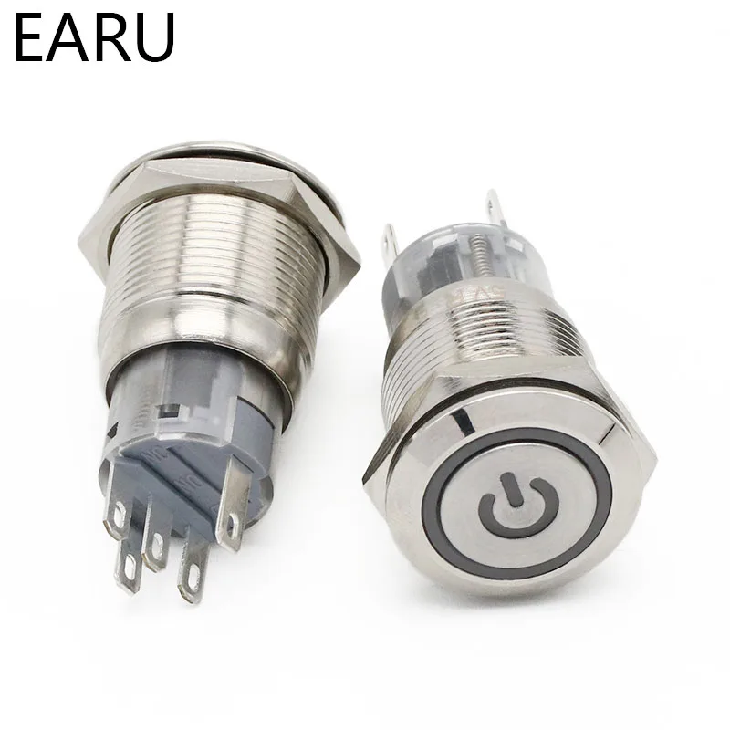 19 мм Мгновенный кнопочный переключатель металлический светодиод 6 в 12 В 24 в 36 в 110 В 220 В 1NO 1NC красный синий желтый зеленый белый оранжевый водонепроницаемый IP65