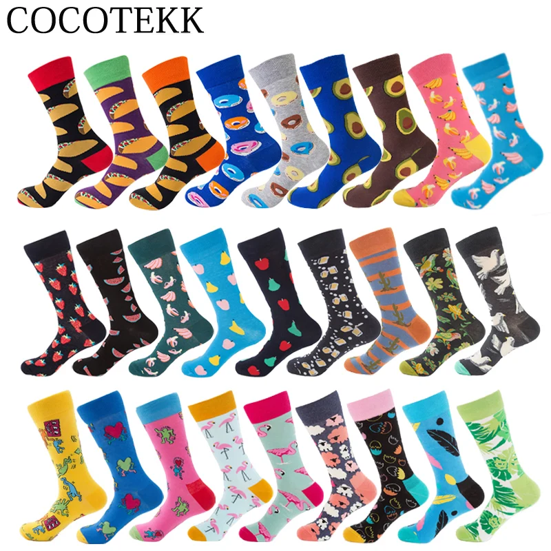 Бренд Высокое качество хлопок мужчины носки 27 Цвета Смешные счастливых яркие носки для малышей с изображением фламинго, авокадо носки конструктор «сделай сам» носки
