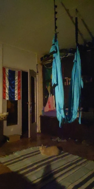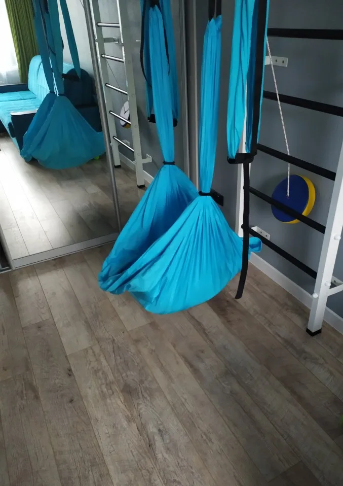 Хотелось оставить максимально полезный отзыв потому что когда сама выбирала гамак меня эти вот "упакован хорошо" и "детям нравится" никак не информировали. И так Гамак из тонкой но плотной похожей на парашютную ткани. Не тянется совсем вообще никак. Мягких вставок нет. Сшит он в два слоя. И из трех частей. Да само полотно гамака тоже сшивное но шов в таком месте что никак не влияет на занятие. Ручки пристегнуты отдельным карабином. Легко снять. Гамак пришел в собраном виде готовый к употреблению если у вас уже есть анкера. Запахов не замечано. Дыр и кривых швов тоже. В реале цвет приятнее чем на картинке заказа. Размеры ширины купола 145 см. В шавасане с ногами лежать не выйдет. Высота от середины купола до крепежа 115 см. Заказ пришел курьерским сдеком со склада в рф за меньше чем неделю. Його студии которые типа сами шьют гамаки продают вот эти же с али в два раза дороже. Заказом довольна!
