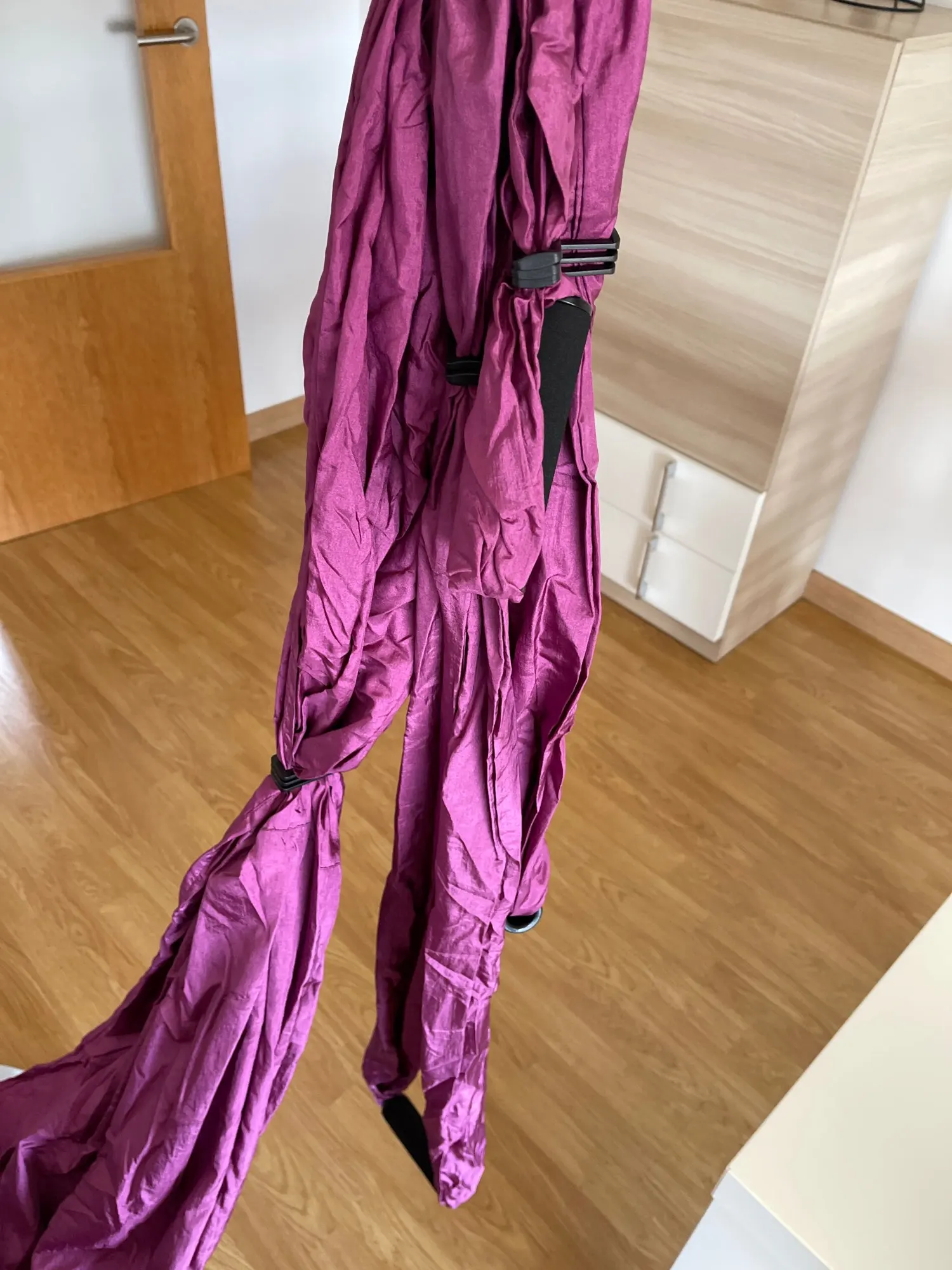 Качели для йоги хорошего качества. Однако карабины имеют очень острые края. Я заменил их, потому что я уверен, что они повредят ткань. Все еще хорошая покупка, и я доволен своей покупкой.