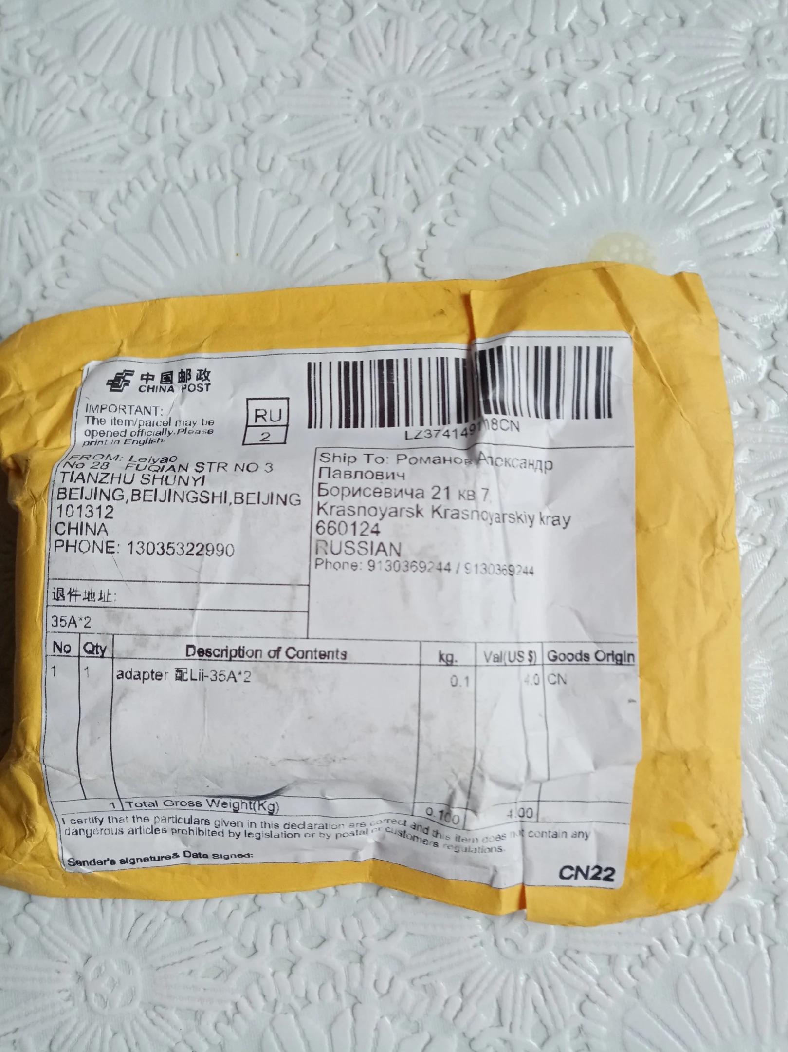 Страна: PT Color: 2PCS Доставка: China Post Registered Air Mail 23.02.2021