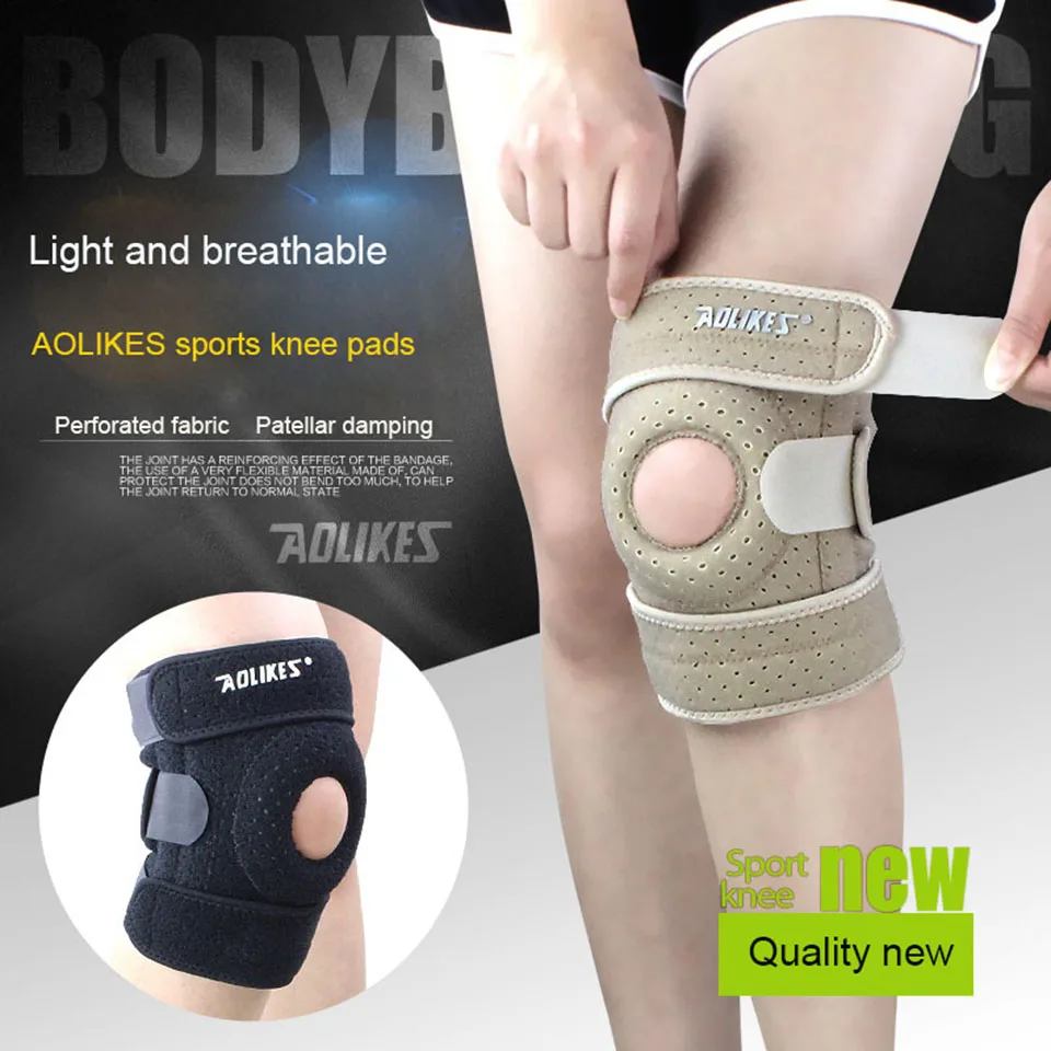 AOLIKES 1PCS Sports Adjustable Sports Training Elastic Knee Support Brace Kneepad Breathable Patella Knee Pads Hole Guard Strap