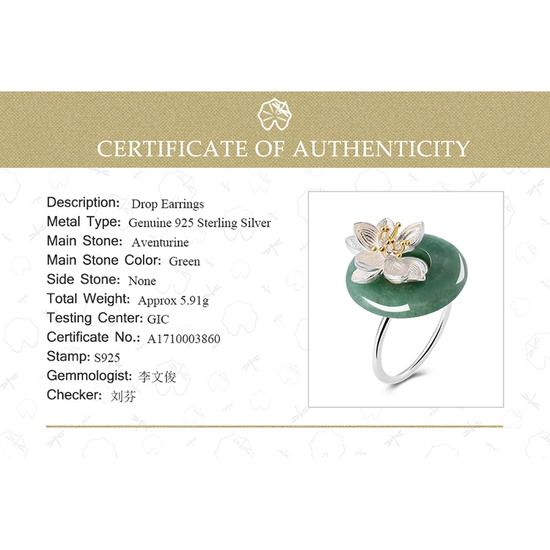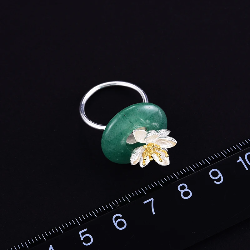 Lotus Fun реальные 925 серебро натуральный зеленый камень творческий ручной работы Fine Jewelry лотоса шепчет кольцо для женщин brincos