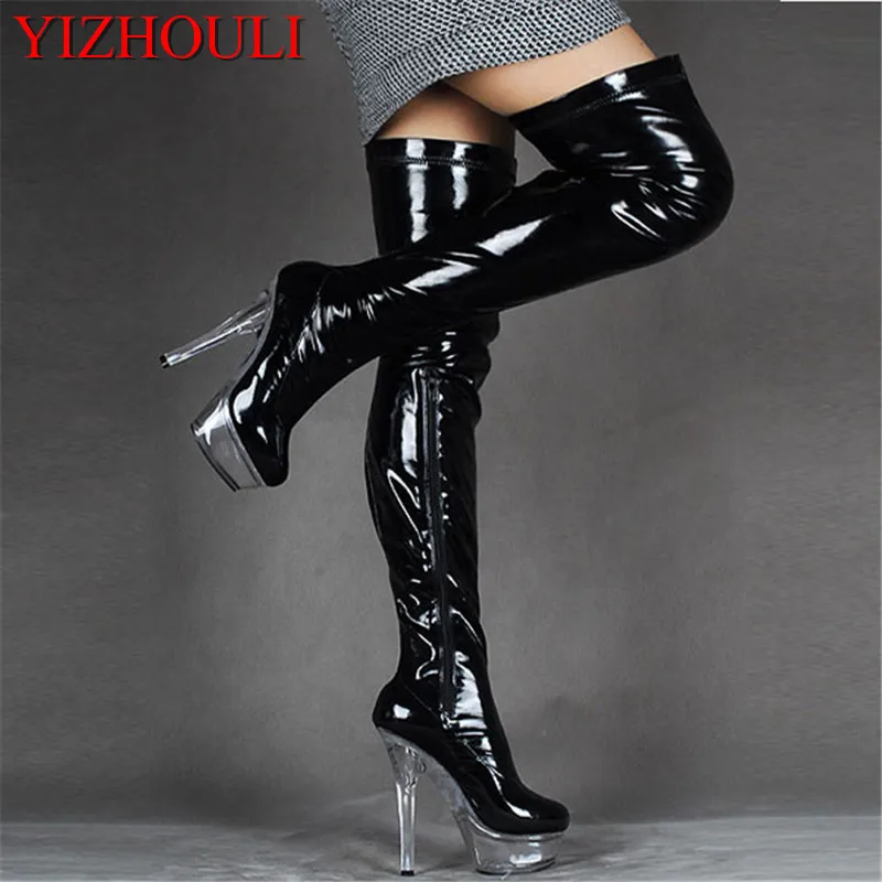 Новейшая модель, туфли-лодочки на высоком каблуке, ботфорты с открытым носком, высокие женские сексуальные сапоги, специальная танцевальная обувь для танцев на шесте высотой 15 см