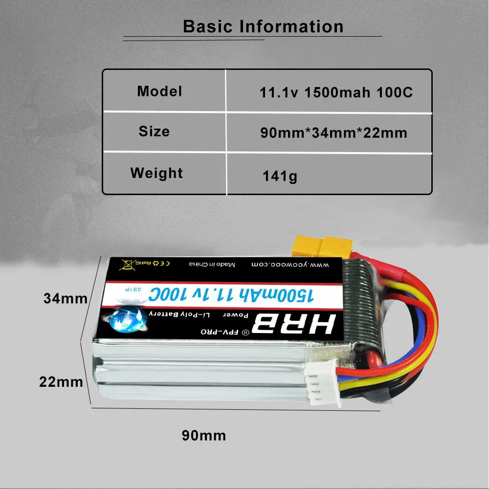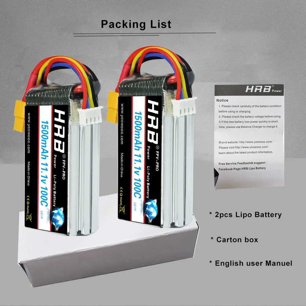 Литий-полимерный аккумулятор HRB 3S, 2 шт., 11,1 В, 1500 мАч, с разъемом XT60 для мини-вертолета, fpv дрона, самолета, радиоуправляемого автомобиля, грузовика, танка, лодки