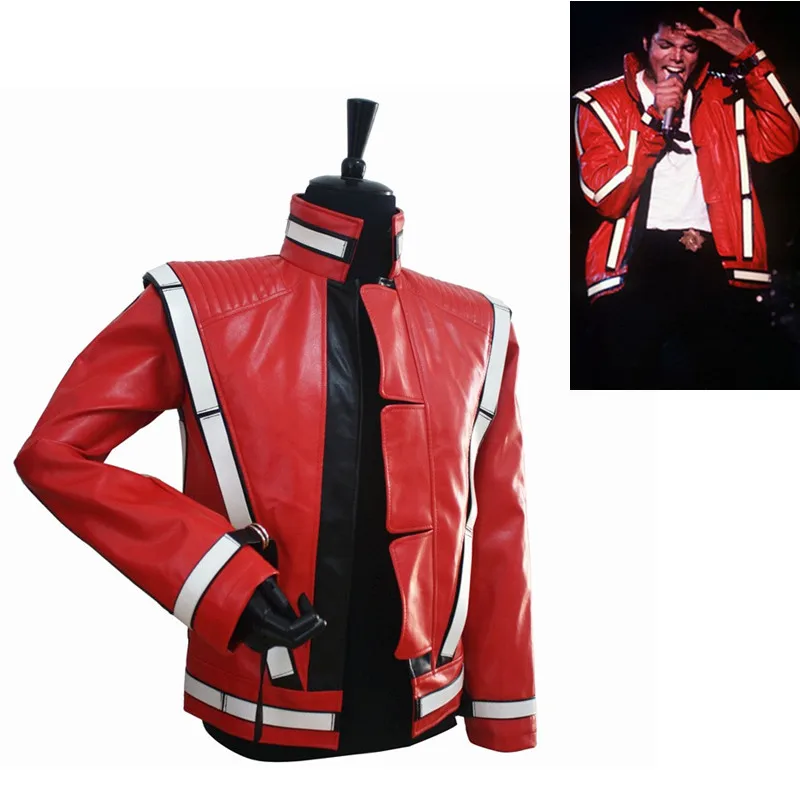 Мужская кожаная куртка в стиле панк, Классическая редкая крутая куртка красного цвета, Майкл Джексон, триллер, открытая стежка, вокал, концерт, модная верхняя одежда