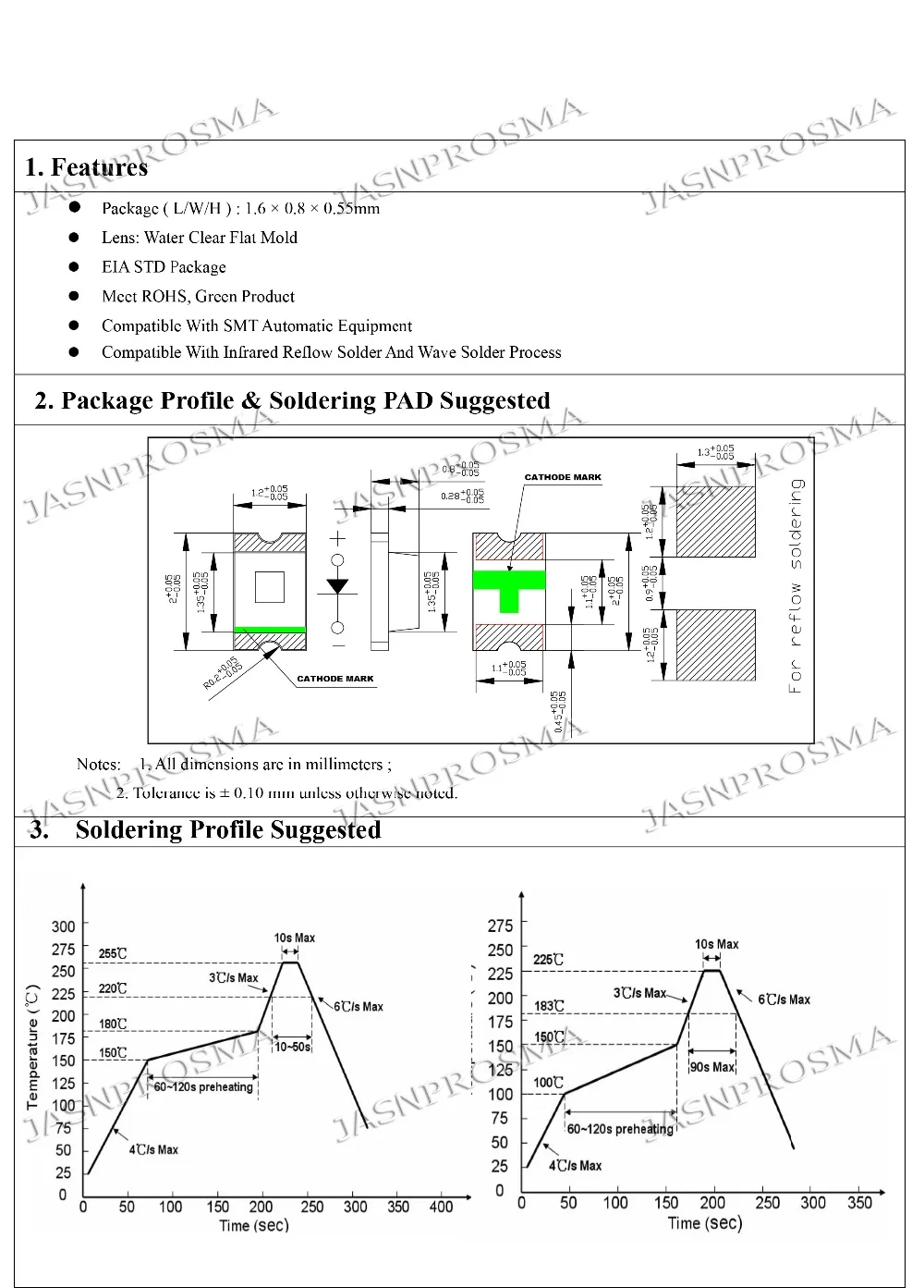 Параметры различаются между разными цветами. Для получения подробной информации, пожалуйста, свяжитесь со службой поддержки клиентов.Другой SMD яркий светодиодный