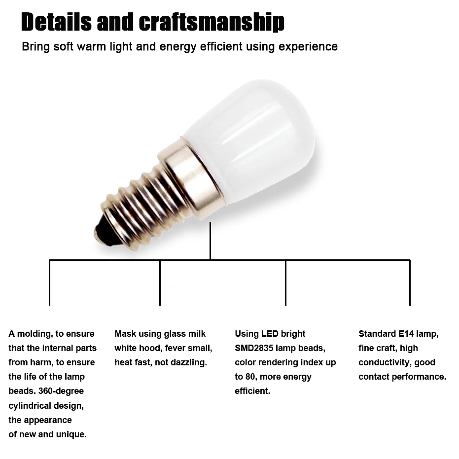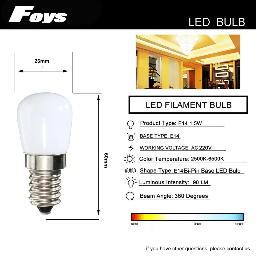 Светодиодная мини-лампа T26 1,5 Вт E14 для холодильника, 4 шт., В переменного тока, яркая комнатная лампа для холодильника, морозильной камеры, хрустальные люстры, освещение