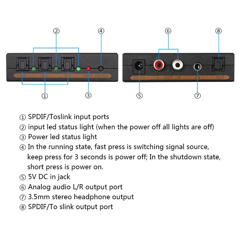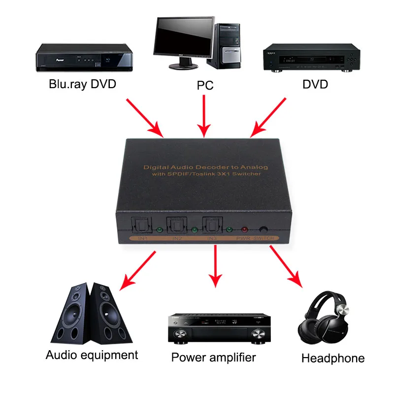 Цифро-аналоговый оптический аудио переключатель декодер SPDIF TOSLINK оптический аудио 3x1 переключатель с наушниками LF