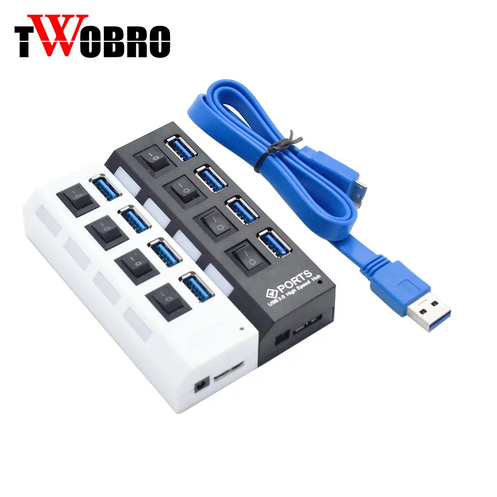 Суперскоростной USB-разветвитель, 4 порта, диагональ 3,0 дюйма, переключатель ВКЛ.ВЫКЛ. + USB-кабель 3,0 для передачи данных для MacBook Air, ноутбуков и ПК