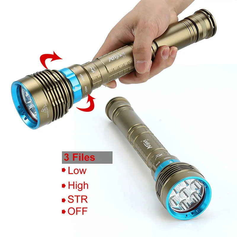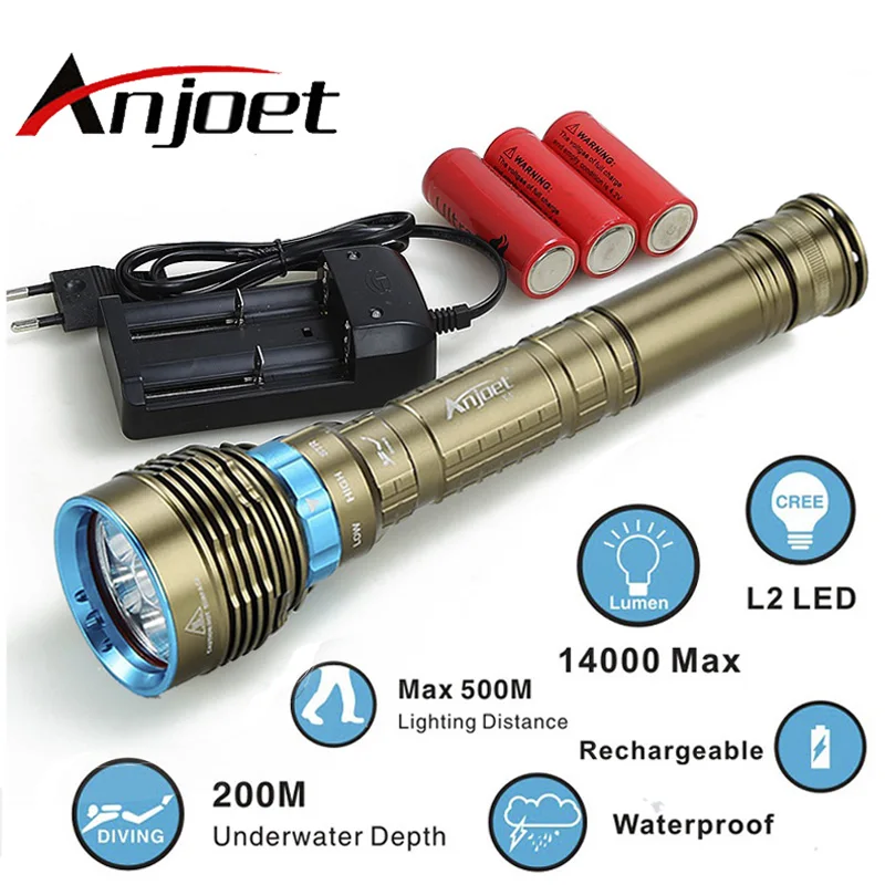 Фонарик Anjoet для подводного плавания, 70 Вт, 3 режима, 14000лм, XM 7x, L2, T6, 200 м, водонепроницаемый, 18650 или 26650