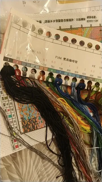 Трек отслеживался, доставка быстрая- 2 недели, нитки и канва хорошие, схема цветная, ключ соответствует