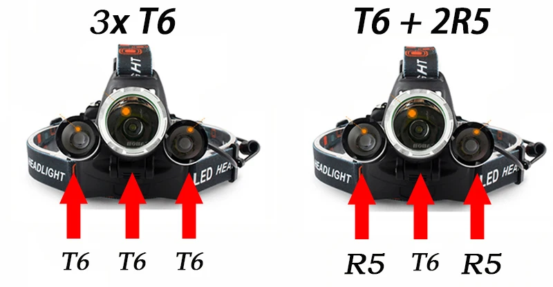Светодиодный налобный фонарь, налобный фонарь, фонарик, фонарик 3x ...