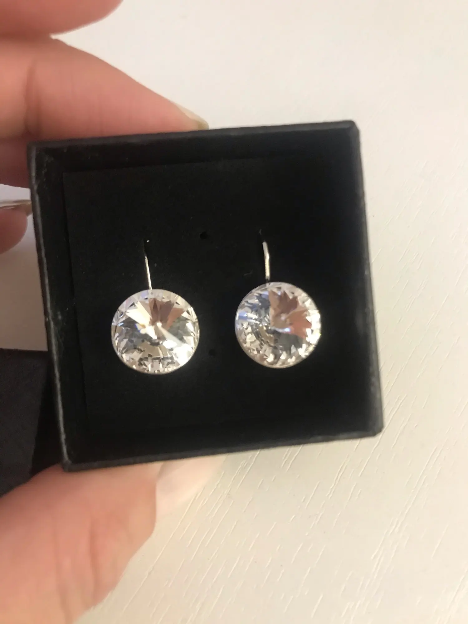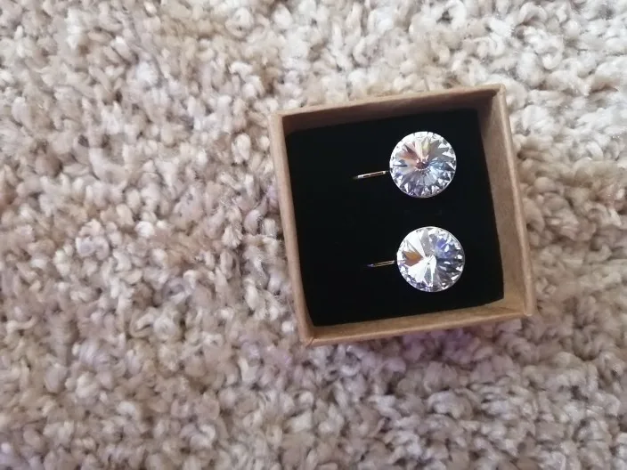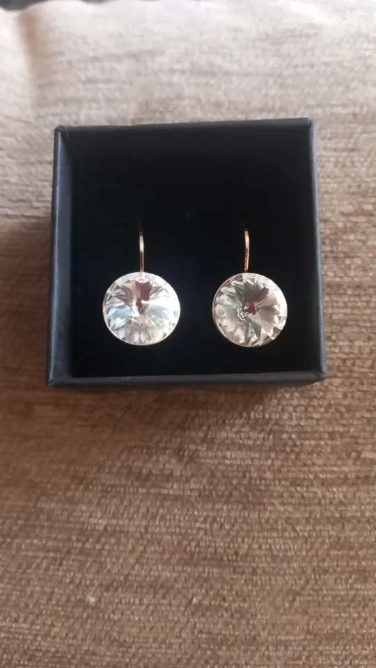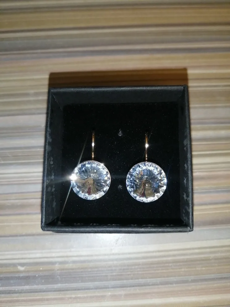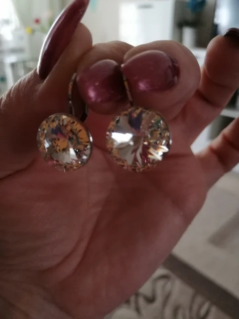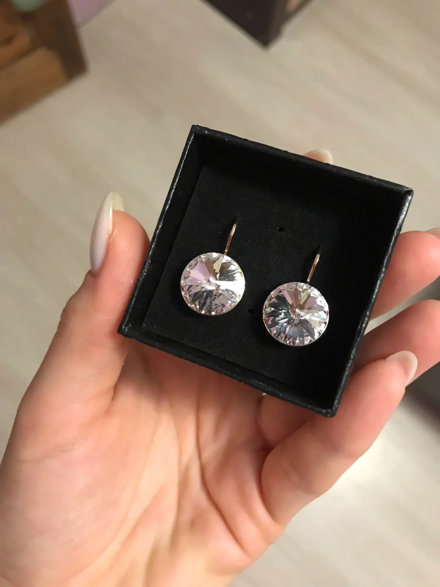 Красивые серьги , конечно, не уровень сваровски,но за свою цену очень хорошо! Кристаллы немного переливаются,крупные, сережки хорошо смотрятся. Доставка до Калининграда 2 недели.