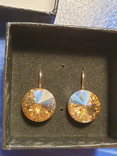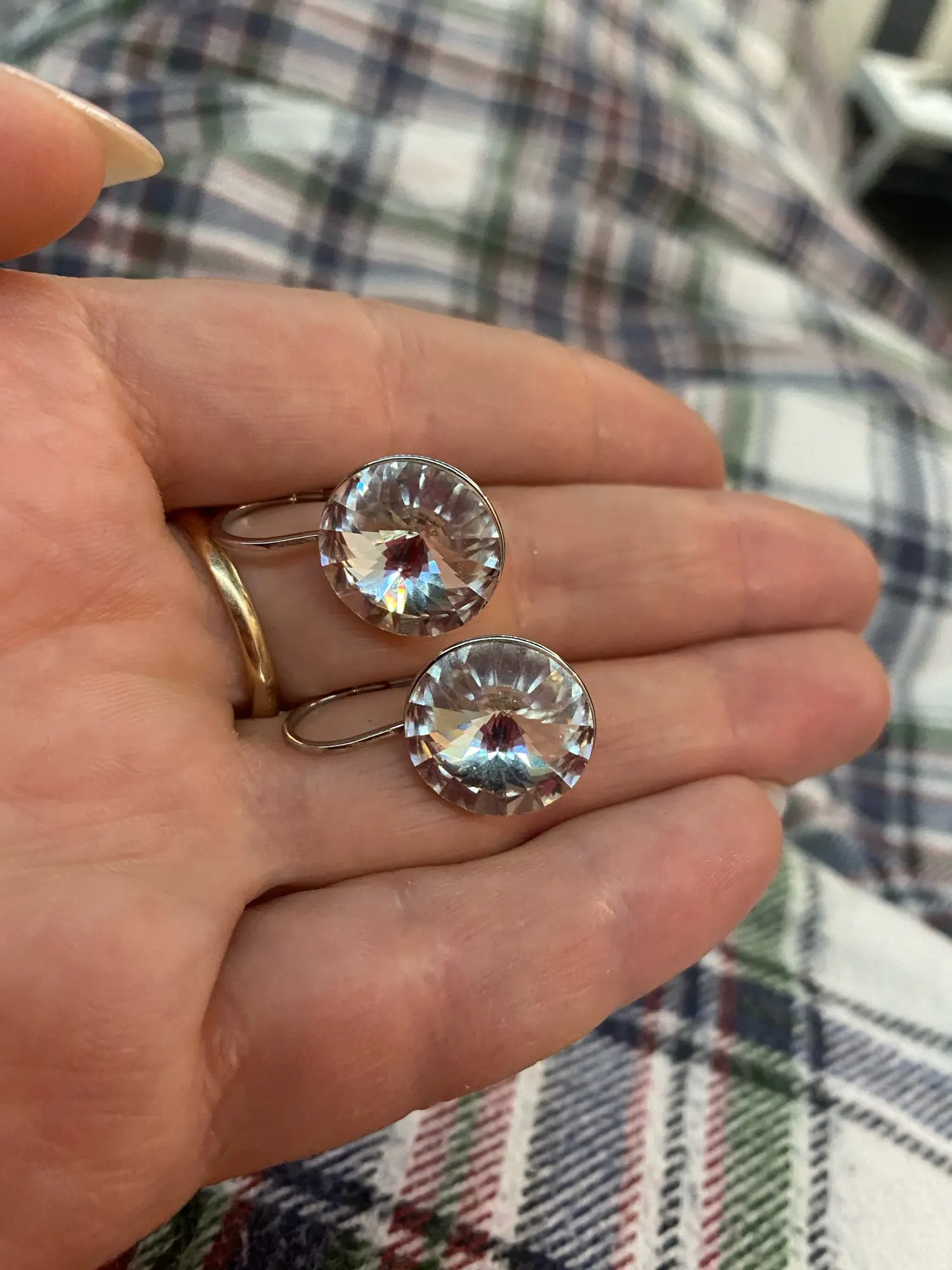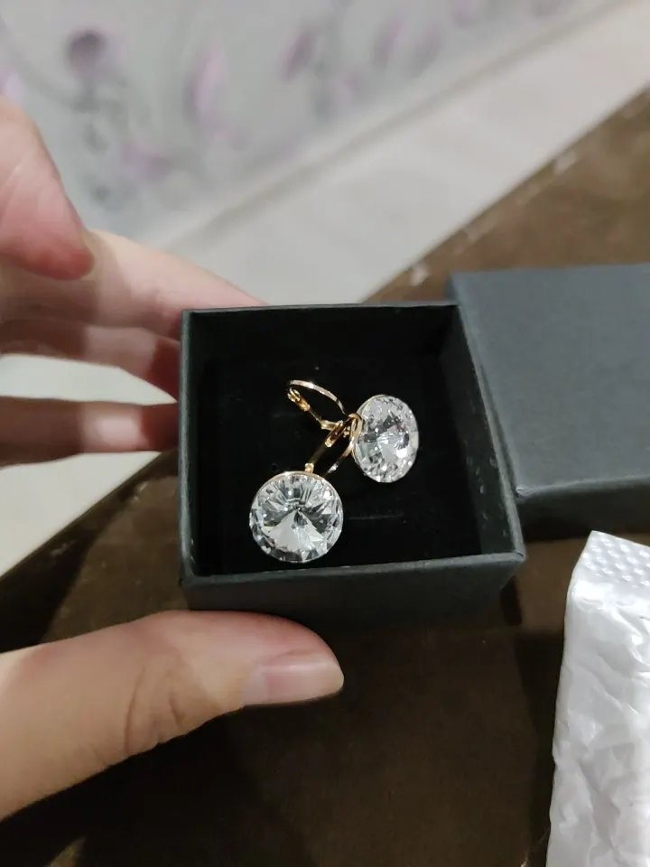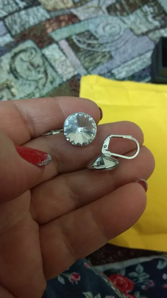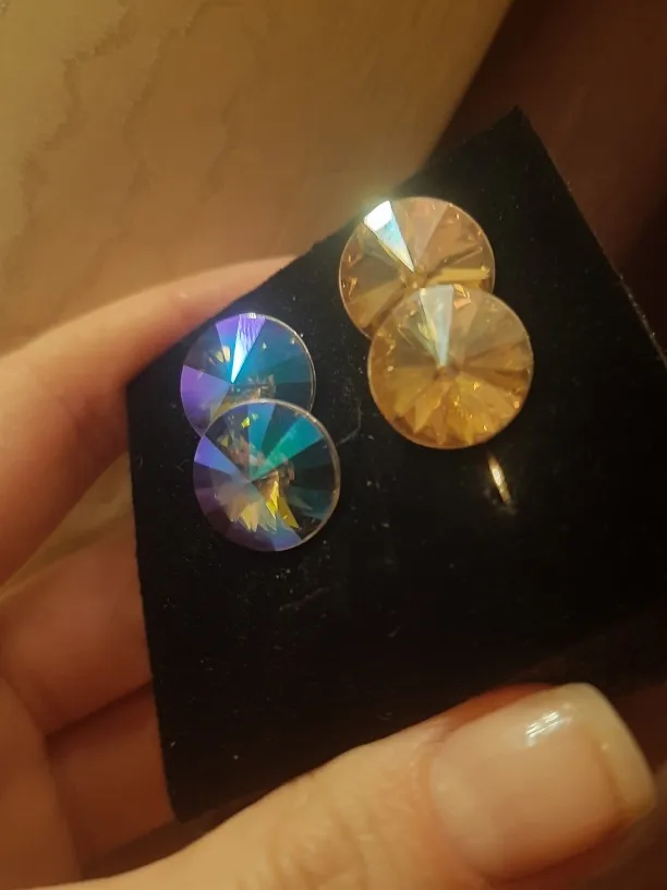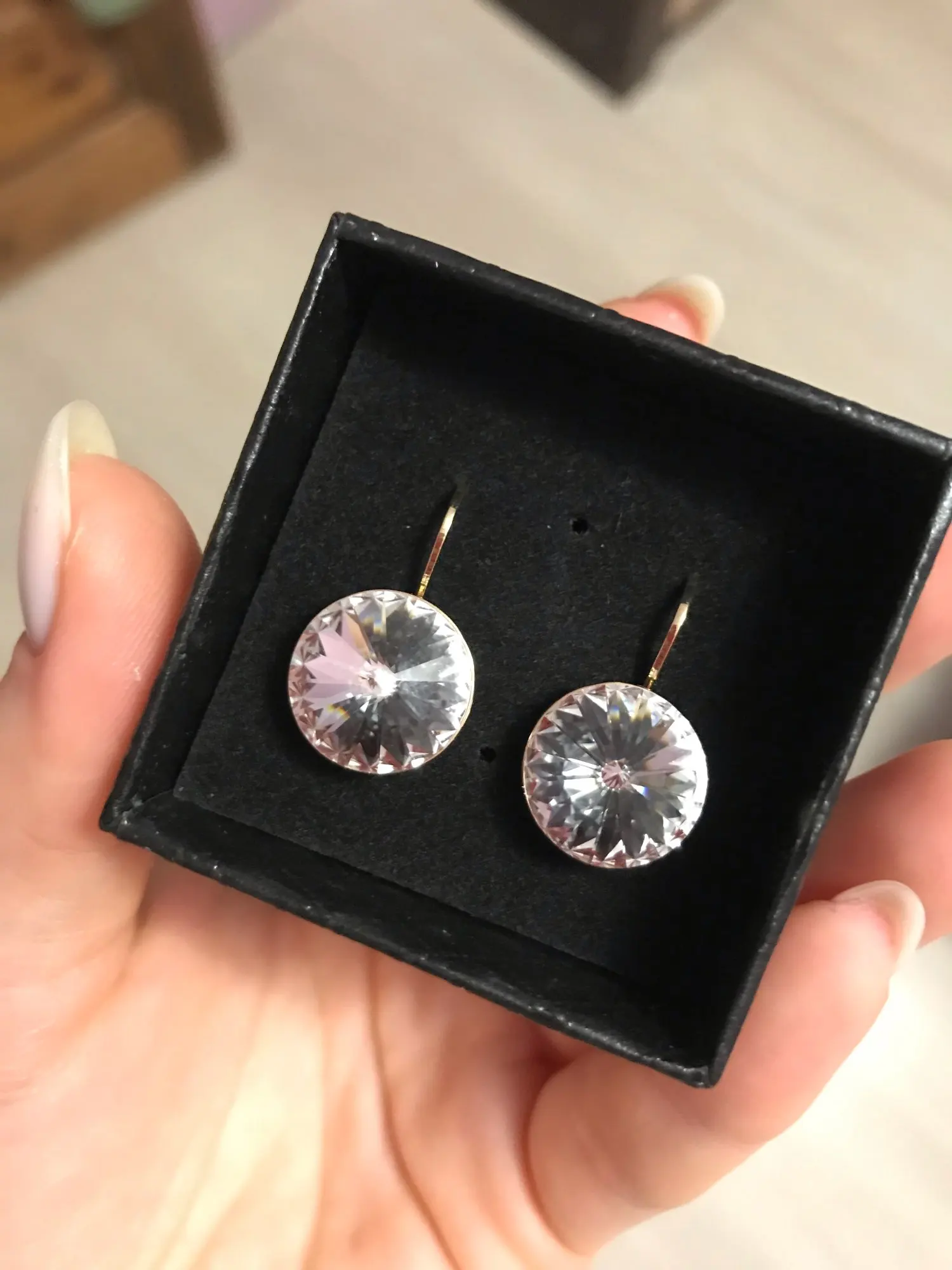 Красивые серьги , конечно, не уровень сваровски,но за свою цену очень хорошо! Кристаллы немного переливаются,крупные, сережки хорошо смотрятся. Доставка до Калининграда 2 недели.