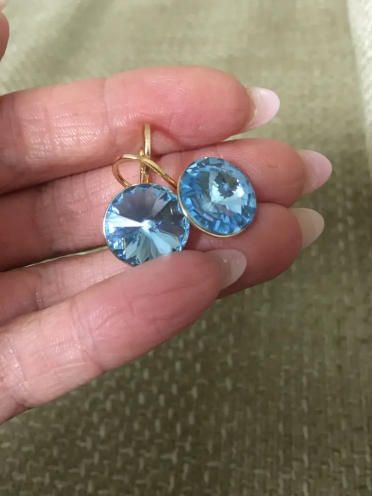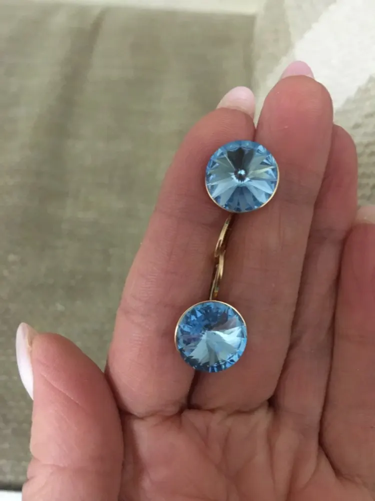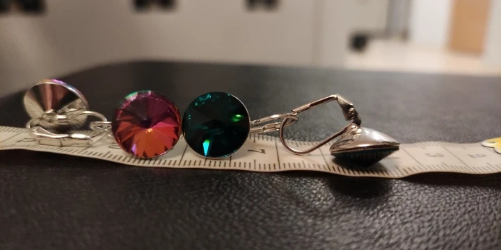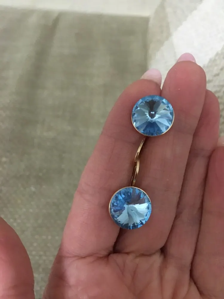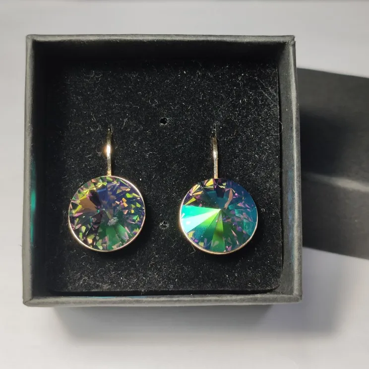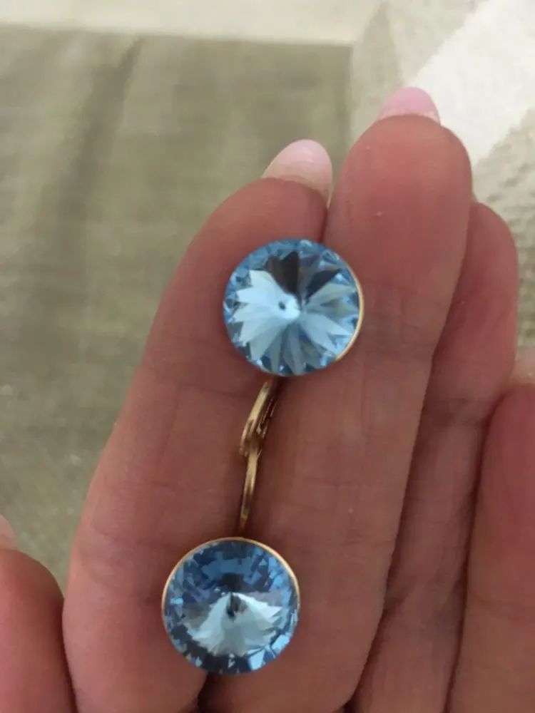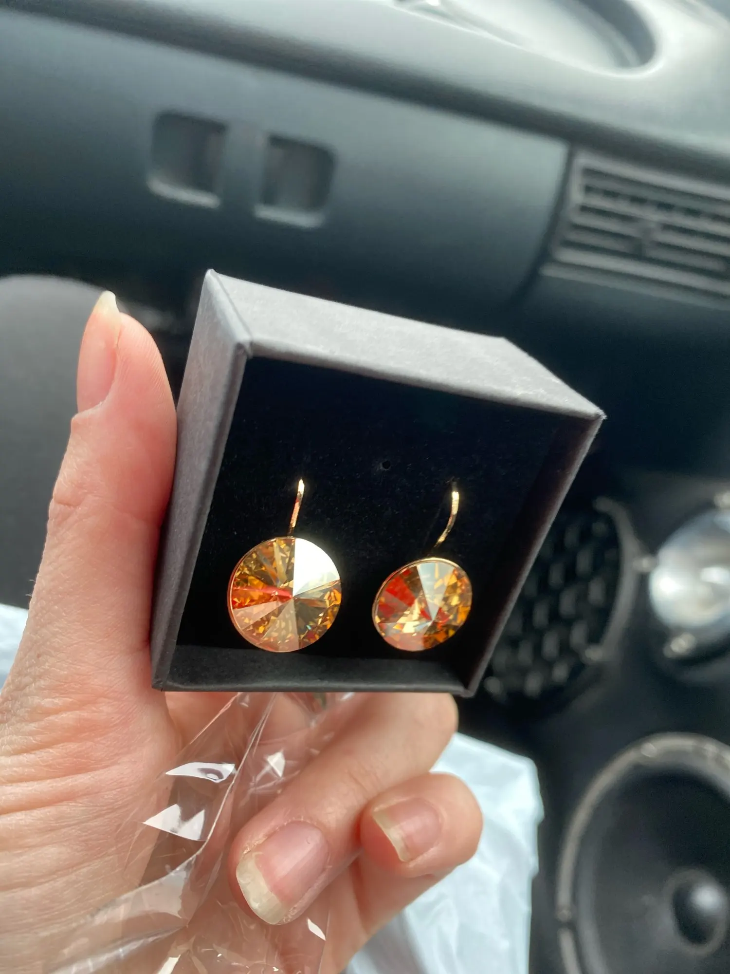 Красивые серьги , конечно, не уровень сваровски,но за свою цену очень хорошо! Кристаллы немного переливаются,крупные, сережки хорошо смотрятся. Доставка до Калининграда 2 недели.