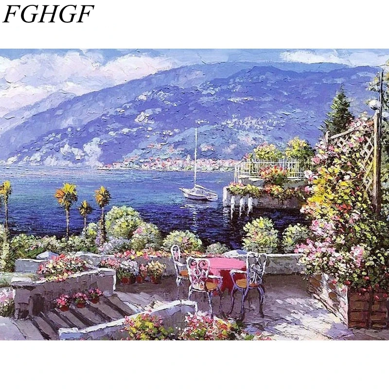 FGHGF безрамный цветочный сад, современное искусство, картина DIY, живопись по номерам, пейзаж, ручная роспись, домашний декор стен