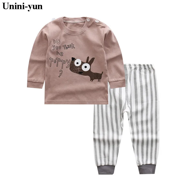 Unini-yun/2018 Модный комплект одежды для маленьких мальчиков, комплект из 2 предметов, осенне-зимняя повседневная детская одежда с героями мультфильмов комплекты для малышей с длинными рукавами
