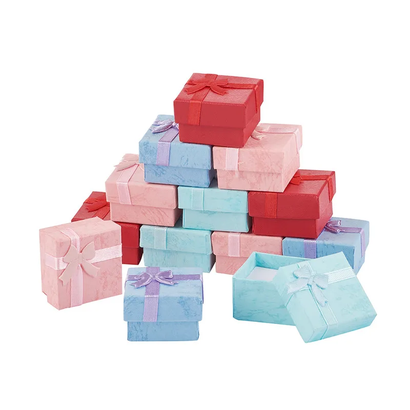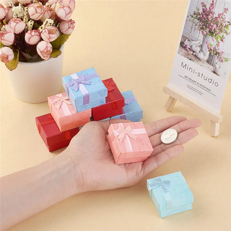12 шт. разноцветные картонные коробки для украшений, подарочные коробки с атласными лентами Bownot для ювелирных изделий, Подарочная коробка для колец 41x41x26 мм