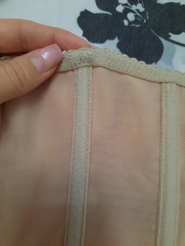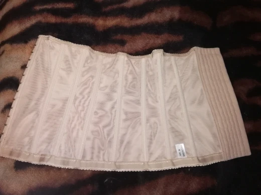 Пользуюсь корсетом уже третий месяц, снимаю только на ночь (так получилось, что после родов он мне обязателен). Так как я не полная, мне нужно было просто выделить талию, с этой функцией корсет справился. Но так как после родов он мне оказался обязательным и ношу его постоянно, по фото видно, что он изрядно поизносился и на долго его не хватит,- уже появились небольшие дырочки и "поползла" ткань. При всей волшебности задумки- сделать стройной талию, корсет достаточно неудобен, при постоянной обязательной носке это неизбежно замечаешь, - швы натирают кожу, особенно сверху и снизу- вшитые для каркаса в корсет железки сделали очень грубыми как верхний шов, так и основание корсета,- если железка оказалась в области ребра или бедра,- то будет очень сильно натирать. Также при носке, в месте, видимо, наиболее подвижном, железячка деформировалась, получился сгиб (фото) и он уже не исправится. Также большой минус в том, что при достаточно широкой размерной сетке по ширине корсета совершенно не