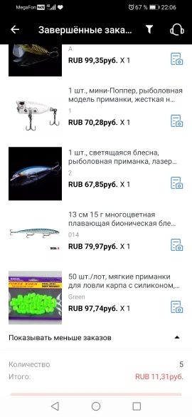 За свою цену хорошее качество! Доставка пакетом(несколько заказов) шустрая. Кольца хорошие, крючки острые. Только воду пьёт, необходимо проклеить петли. На равномерке своя игра, на твиченге не играет (может у меня руки кривые). Сопротивление создаёт приличное! Несмотря на наличие шарика, в воде не слышно шумов, колебания средние.