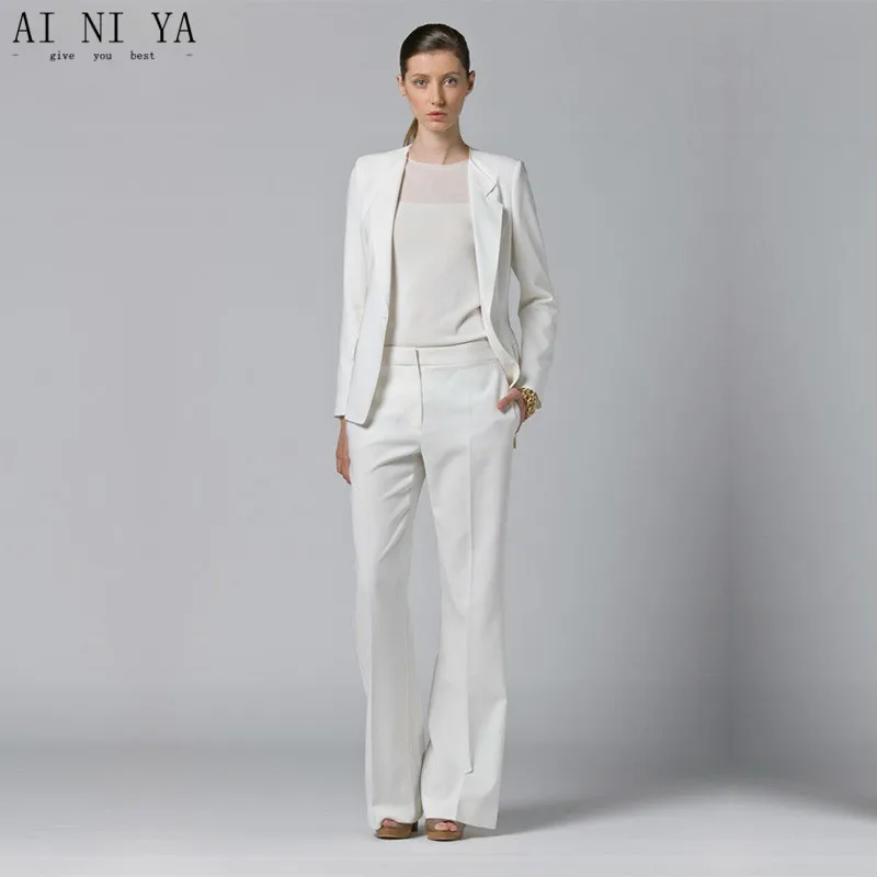 Женские деловые костюмы, белые костюмы из 2 предметов, Блейзер, Офисная форма, дизайнерские женские деловые элегантные Брючные костюмы, вечерний смокинг для выпусквечерние вечера