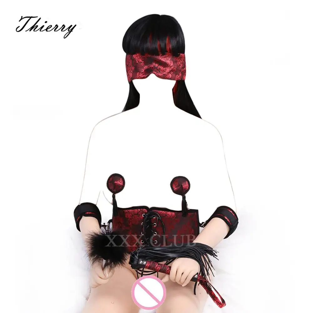 Thierrry Шелковый тканевый корсет для сосков, завязанные повязки на руку, манжета, плетение, перо, связывание, эротические секс-игрушки для пар, Женская игра SM