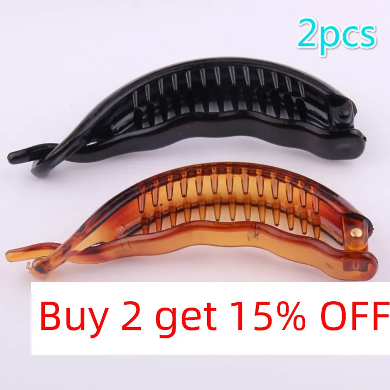 Заколка для волос для женщин, простая, пластиковая, черная, коричневая, заколка для волос в форме банана, 2 шт.