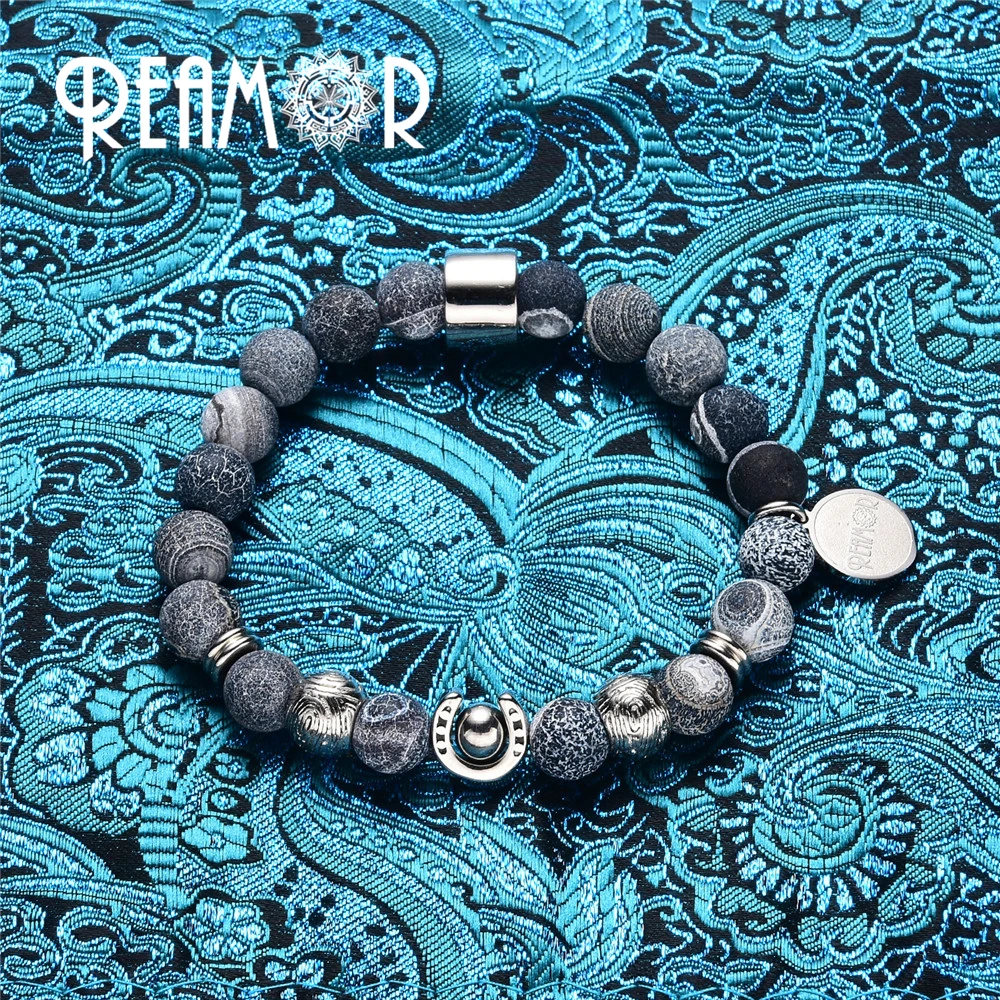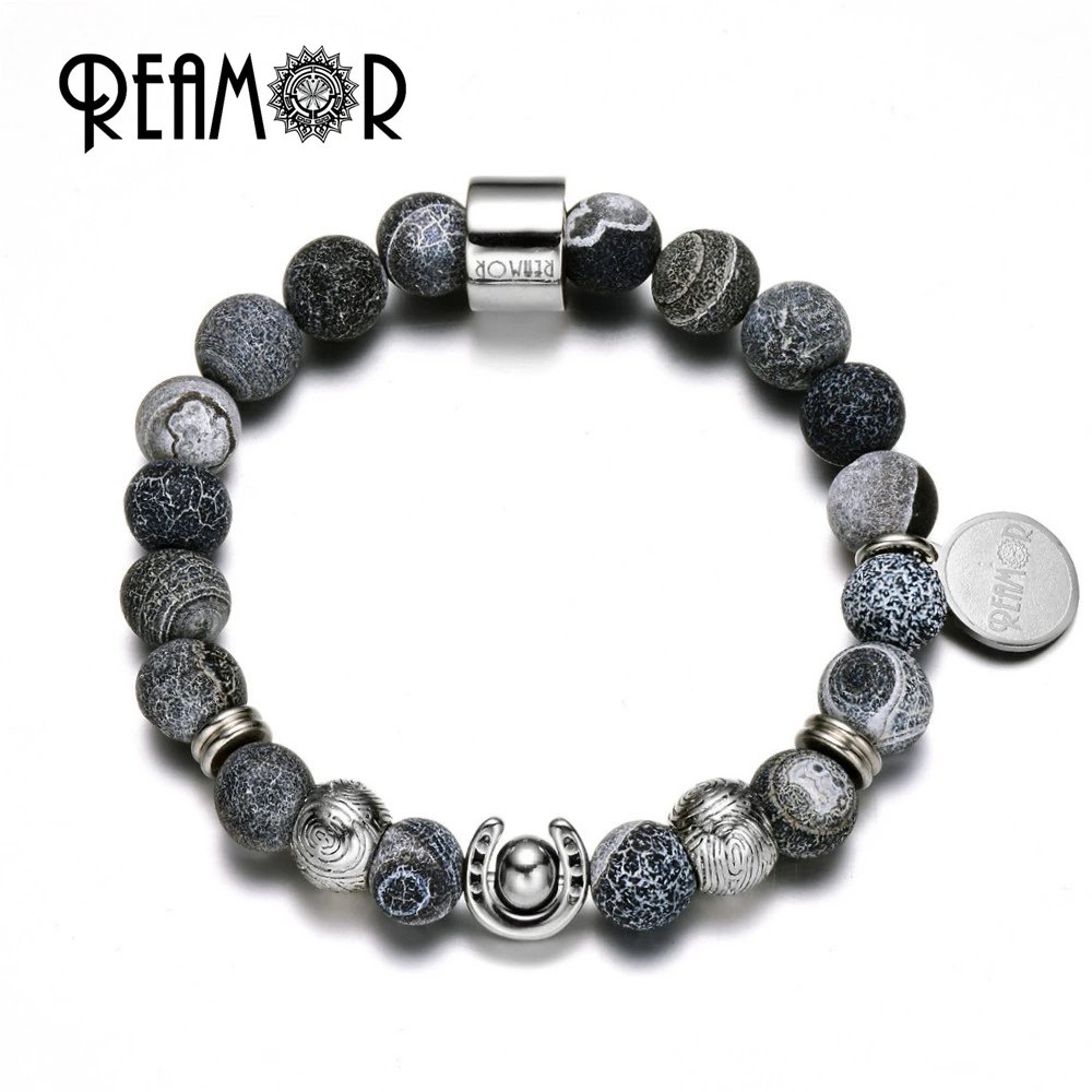 Бусины Из Нержавеющей Стали REAMOR, удача, подвязки, естественное выветривание, черный оникс, тянущиеся бусины, браслеты для мужчин, ювелирные изделия