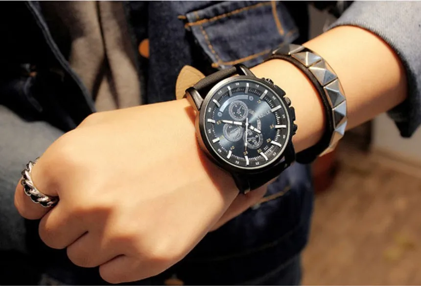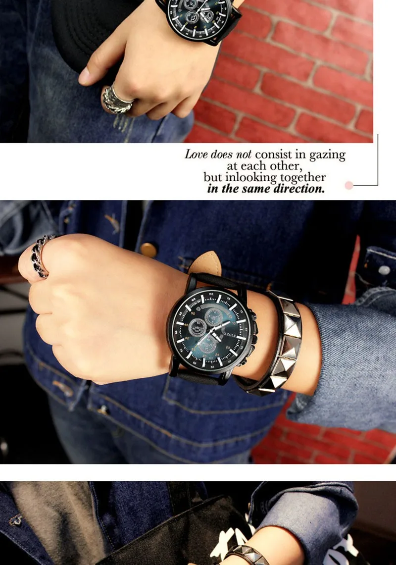 Часы наручные мужские кварцевые с кожаным ремешком, модные роскошны...