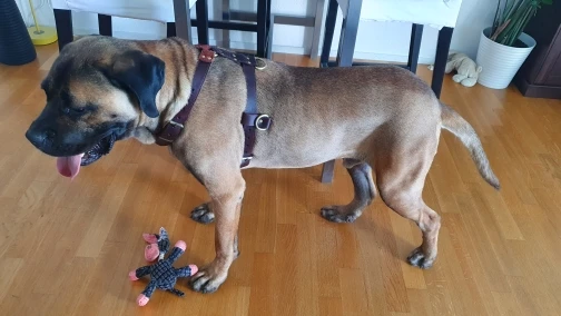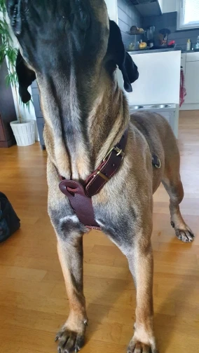 Очень хороший продукт хорошего качества. Настоящая кожа, как указано. Единственный недостаток в размере: слишком маленький для моего мужчины rottweiler, и это предел для моей жены.