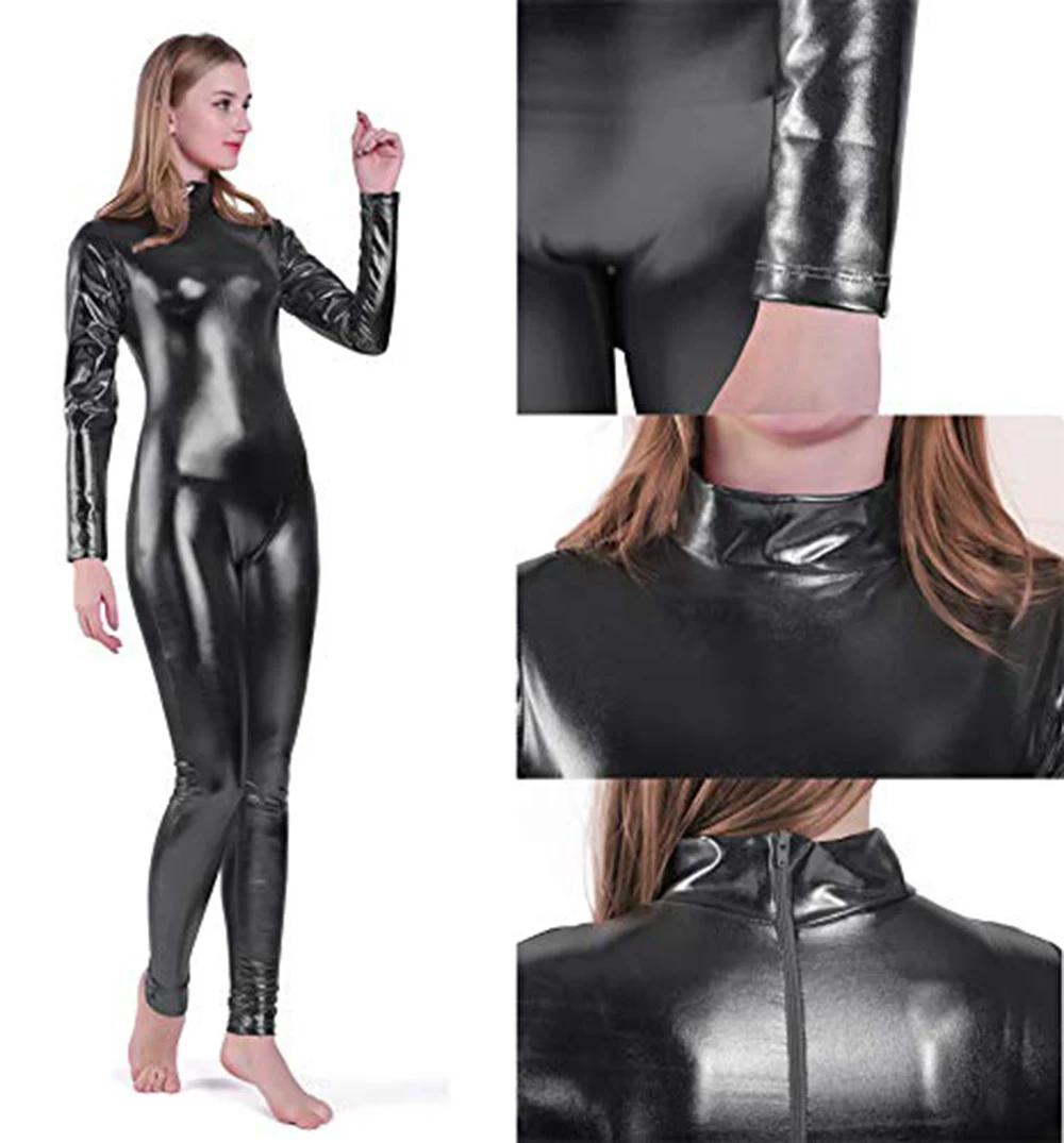 SPEERISE женская серебряная блестящая металлическая с длинным рукавом цельнокроеная унитаза зентай Косплей искусственная танцевальная гимнастическая сценическая одежда