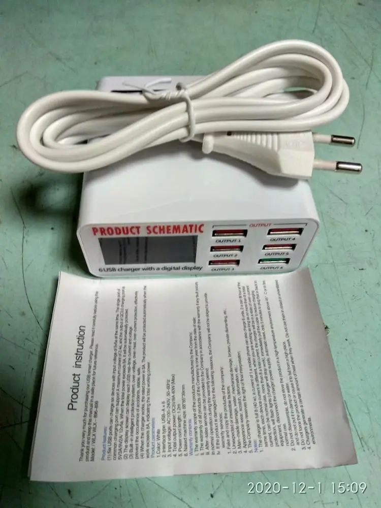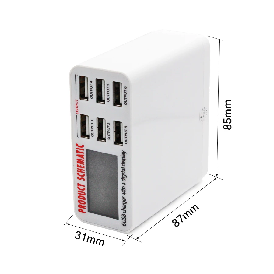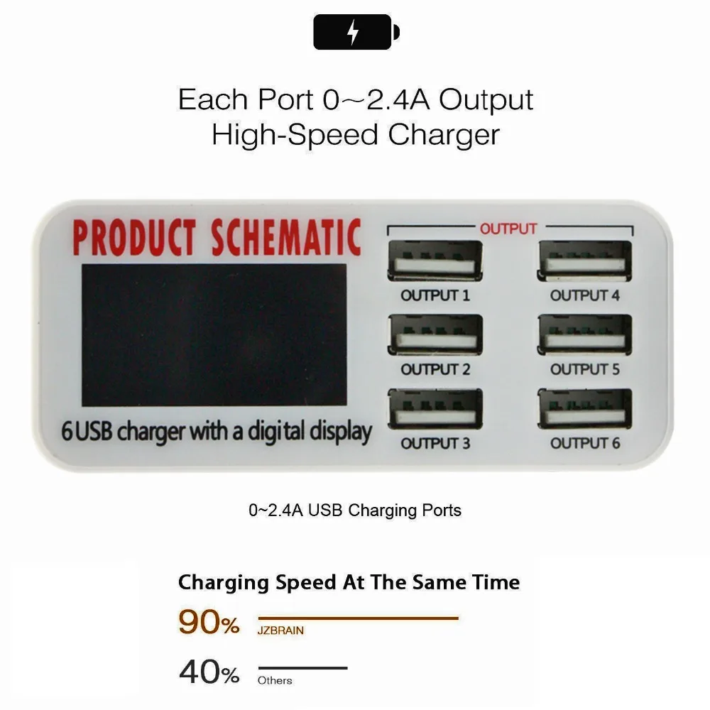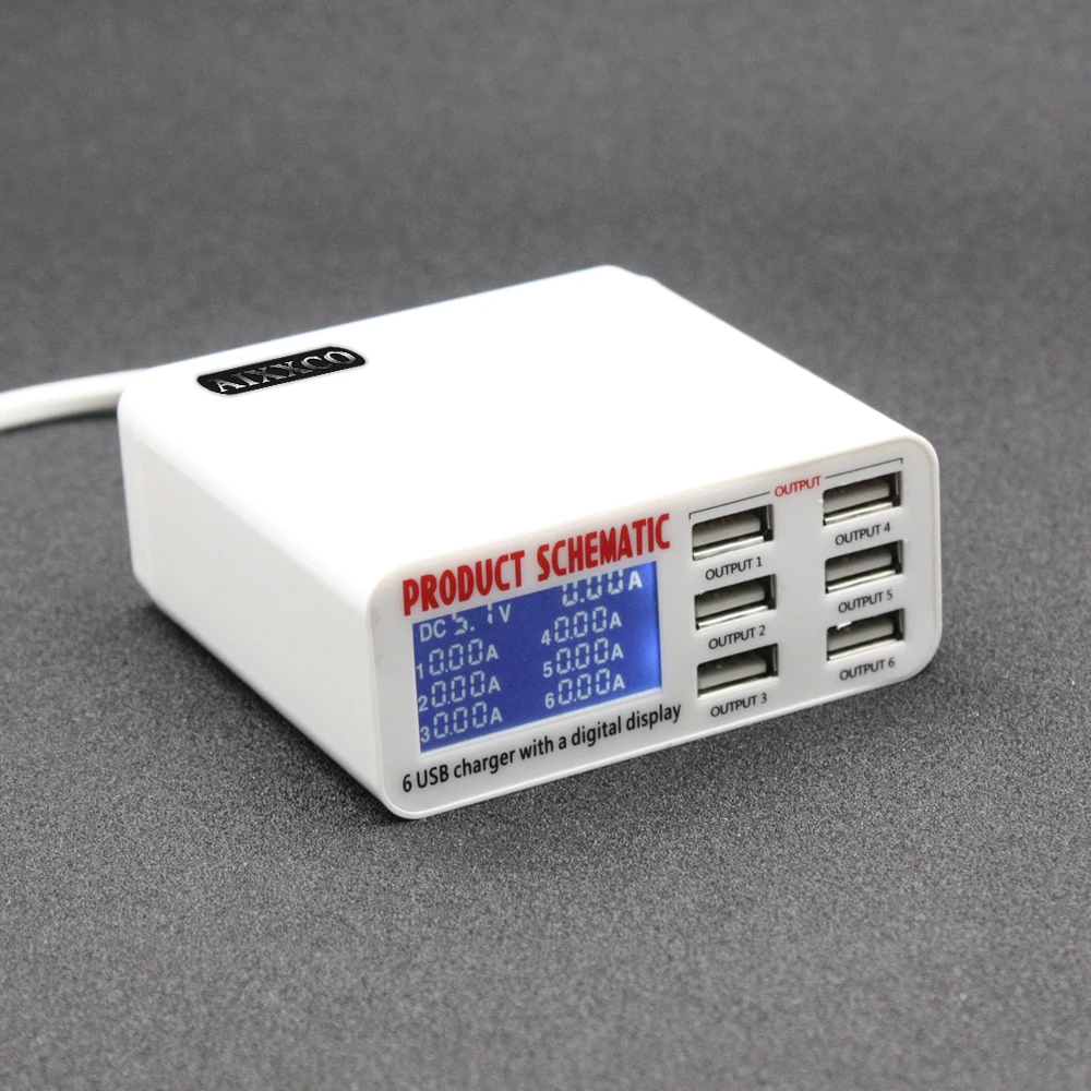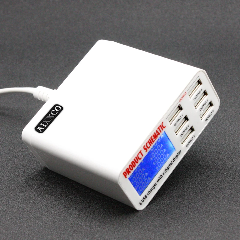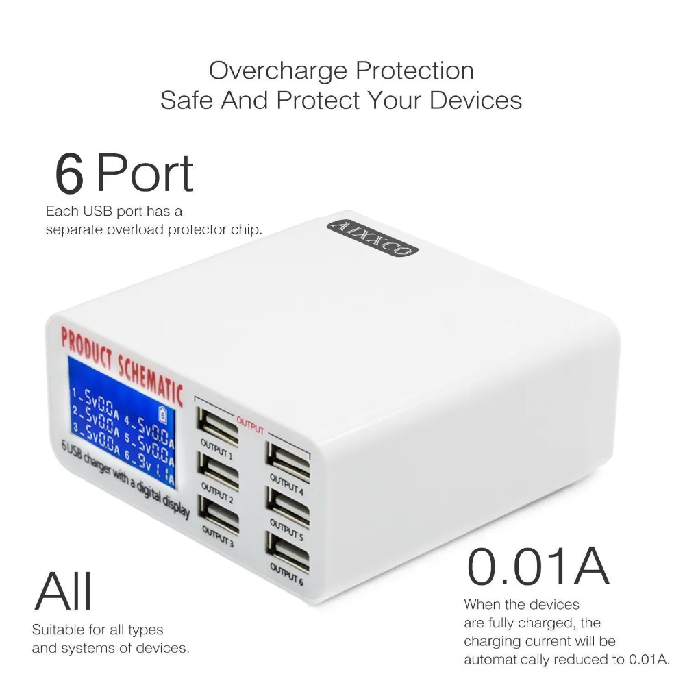 Зарядная Станция AIXXCO 6A с ЖК-дисплеем, 6 USB-портов